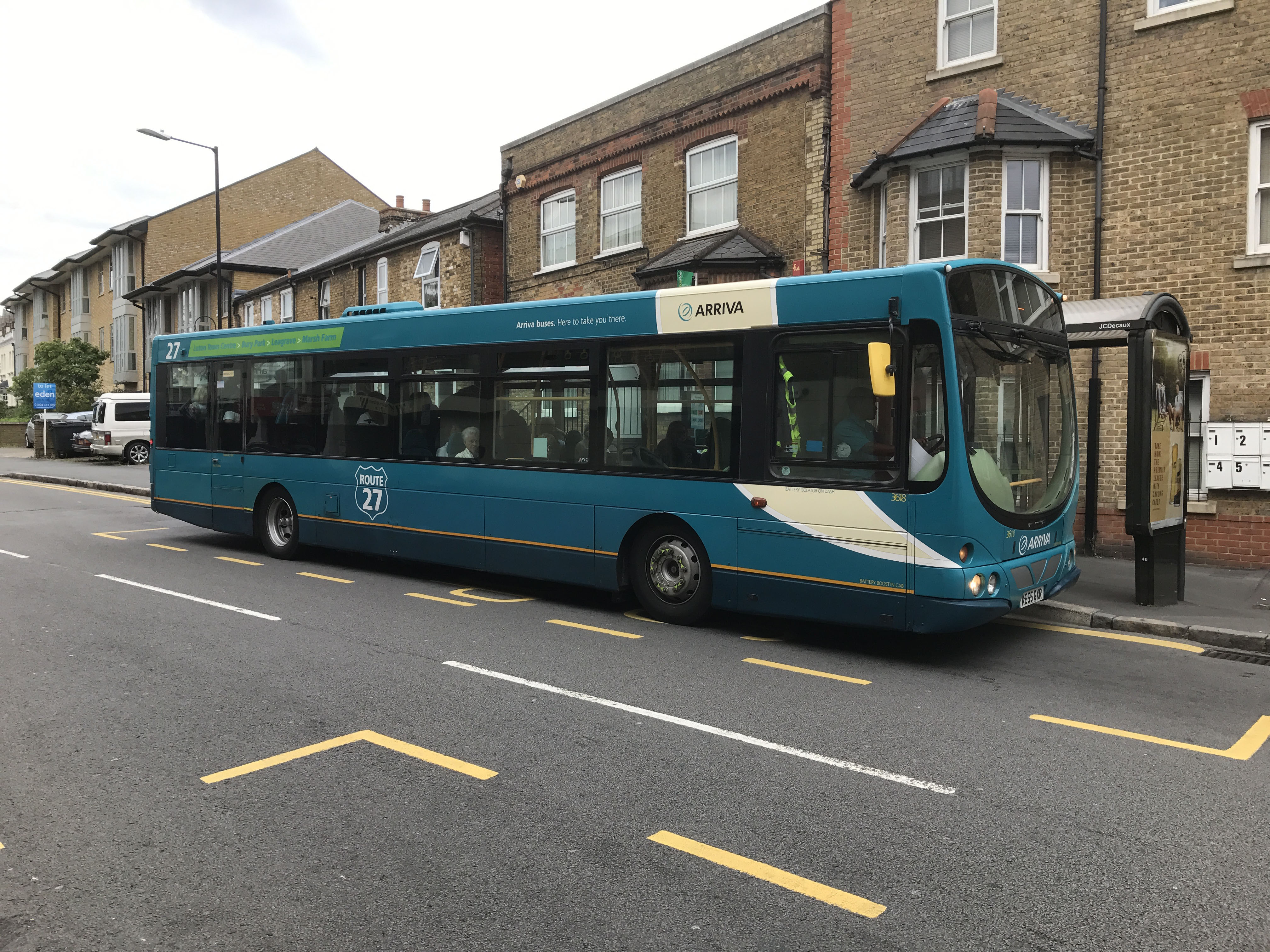 Branded for Luton route 27 to Marsh Farm in August 2017, L94UB 3618 (KE55GXR) is seen in Castle Street, High Wycombe, a long way from Marsh Farm!