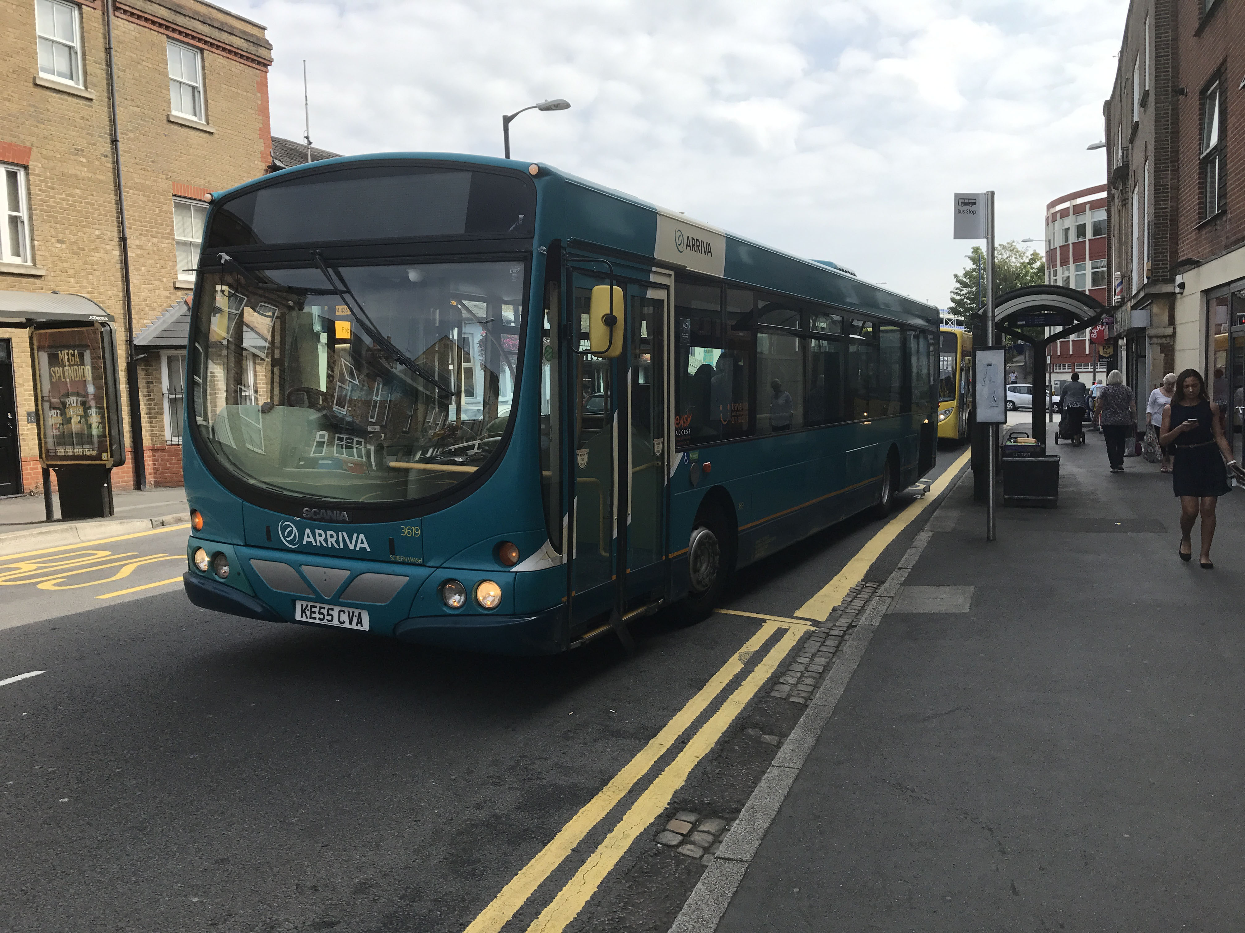 Another Wright Solar L94UB Luton refugee on Castle Street that August was 3619 (KE55CVA) minus any Bedfordshire route branding.