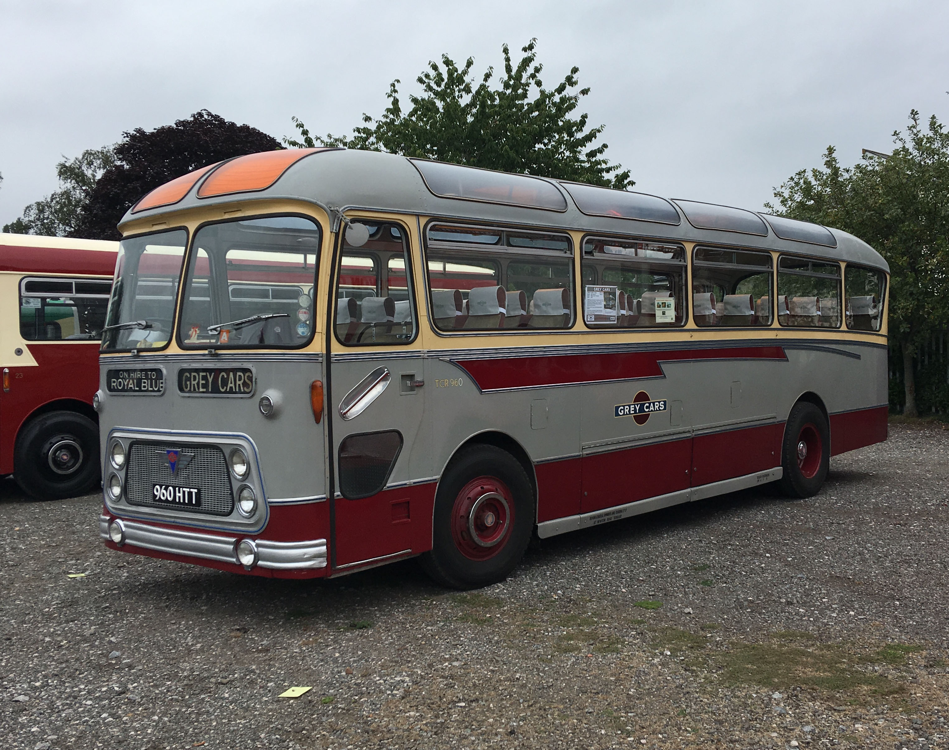 AEC Reliance 1, seen earlier, is now with the "new" Grey Cars and is seen at their depot in November 2022.