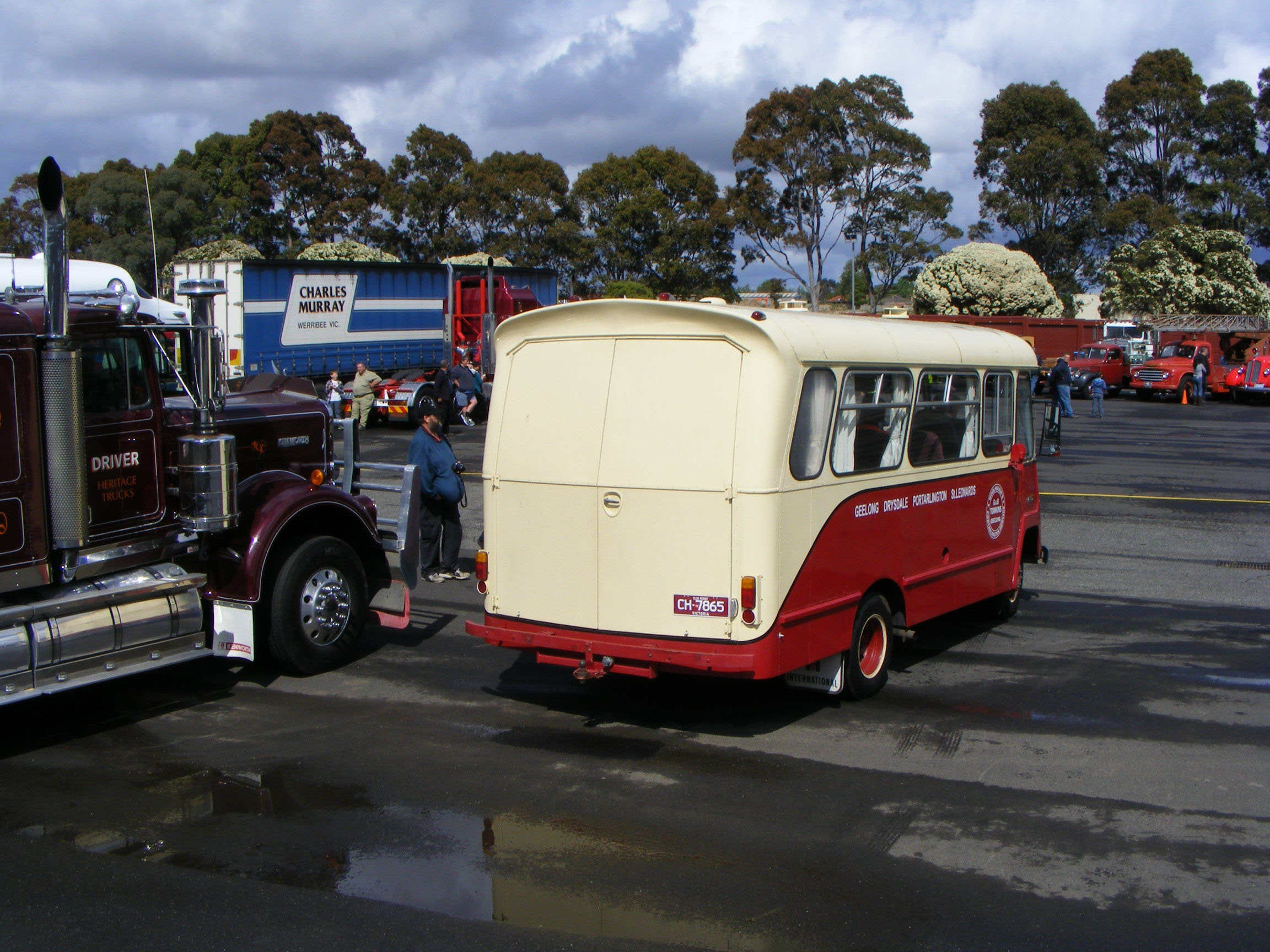 The International was built originally for government use. It has been restored in the livery of Tompkins of Geelong. The style and colours mirror those of the Masterton Bedford OB in the Driver Heritage Collection which is unsurprising when both were restored by the same person. |