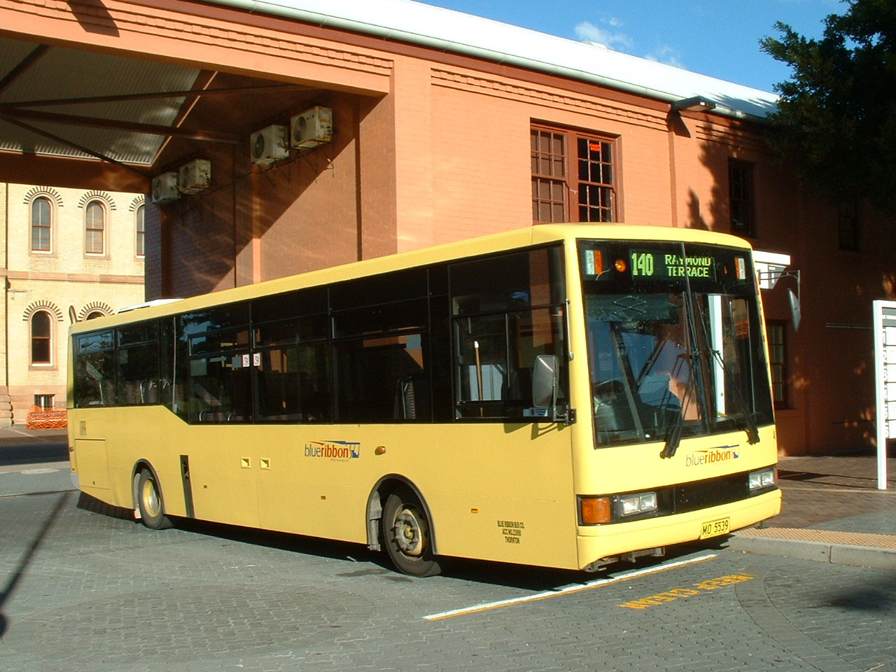 Blue Ribbon 46 (MO5539) is entering Newcastle Bus Station. The low entry Custom bodywork dates from 1997 and sits on a Volvo B6LE chassis. The bus was new to the National Bus Company's Brisbane subsidiary, which was still owned by National Express in early August 2004. National Express sold its Australian interests and the bus interests in New South Wales passed to Singapore based Comfort Del-Gro. The Queensalnd operation went via Veolia to Transdev. The Blue Ribbon fleet was later merged under the Hunter Valley name with Comfort's later acquisition of Toronto Bus. |
