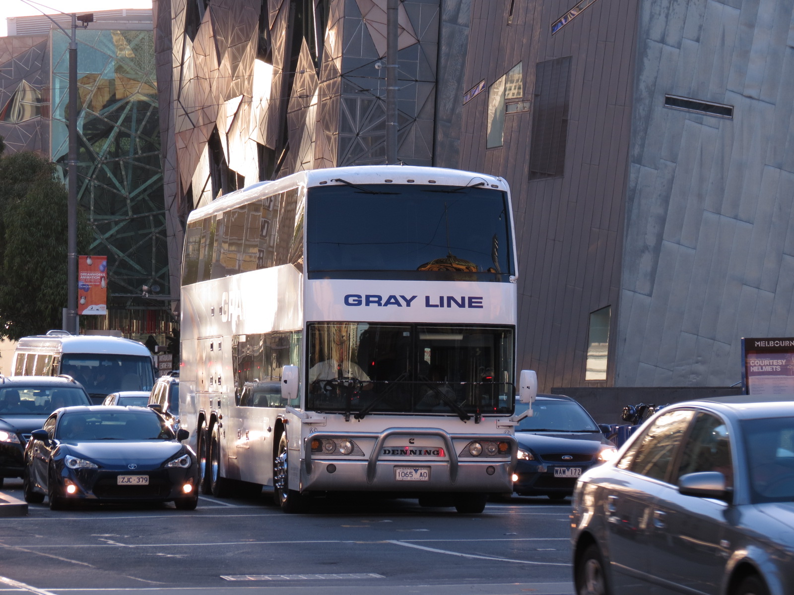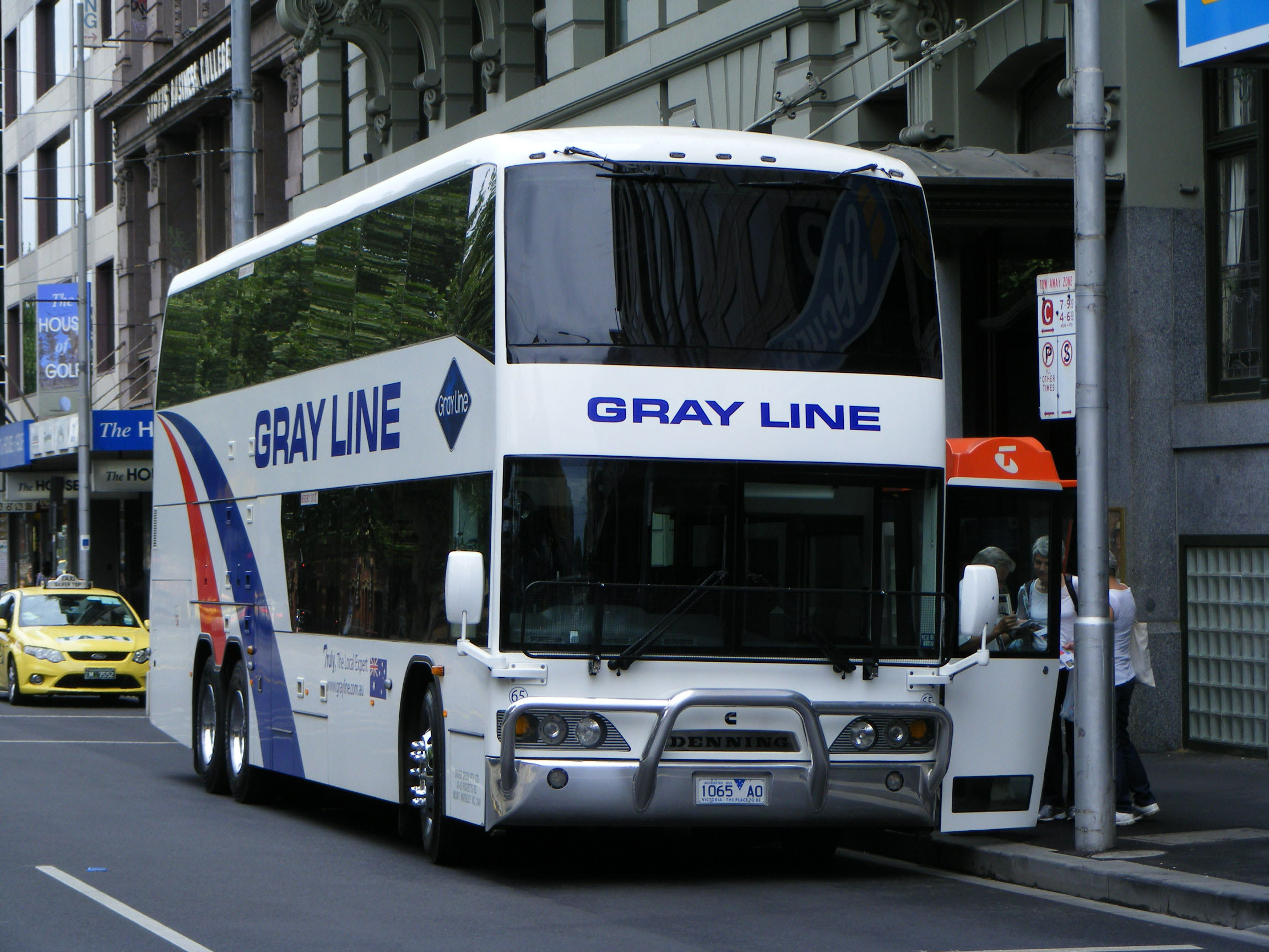 After clocking up well over 1000000km on the Great Ocean Road daily excursion, the Motorcoach Classic III decker had been completely refurbished for its retirement role on the Phillip Island Penguin Parade run, which is only slightly less arduous. The bus is like new inside. New vinyls can be glimpsed in the external shots depicting the famous penguins. As the Penguin excursion departs late afternoon the vehicle was free to participate at Sandown. Its replacement on the Great Ocean Road Run, Denning 65, was already half way down the famous road. Photo ref A1418. |