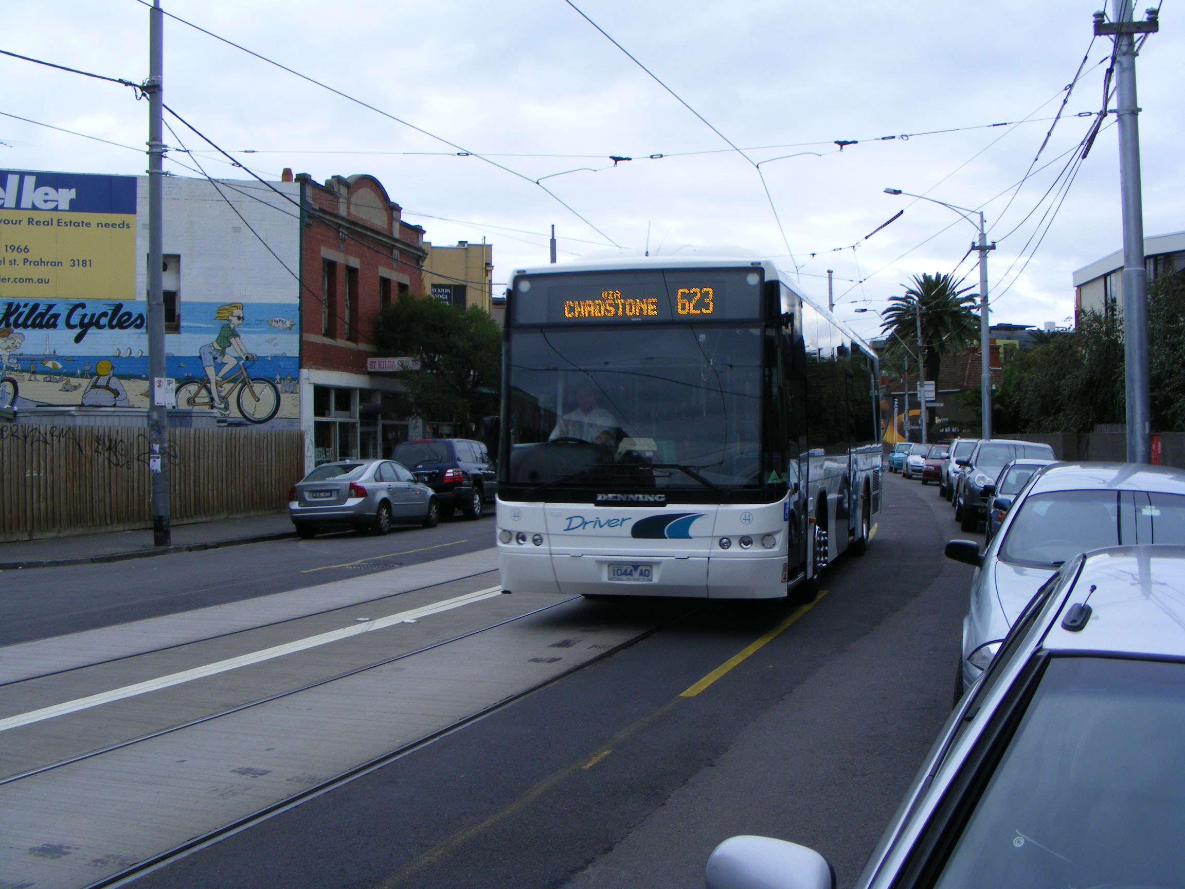 Another all Denning Phoenix low floor CAT powered bus in St Kilda in April 2010, 44 (1044AO) ultimately bound for CDC Eastrans. |