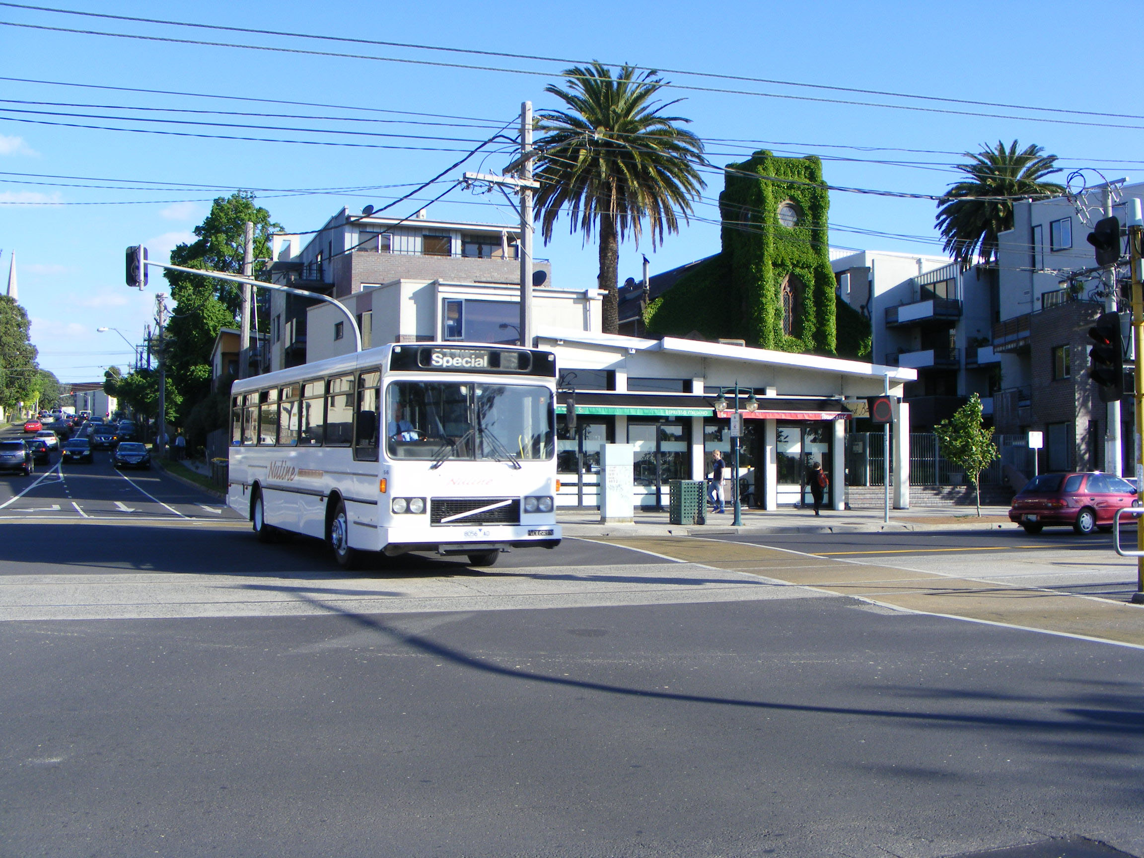 Four years later in January 2016 56 was seen close to St Kilda Station on route 96 tram replacement work waiting to head to the city via Canterbury Street which parallels the tram line.