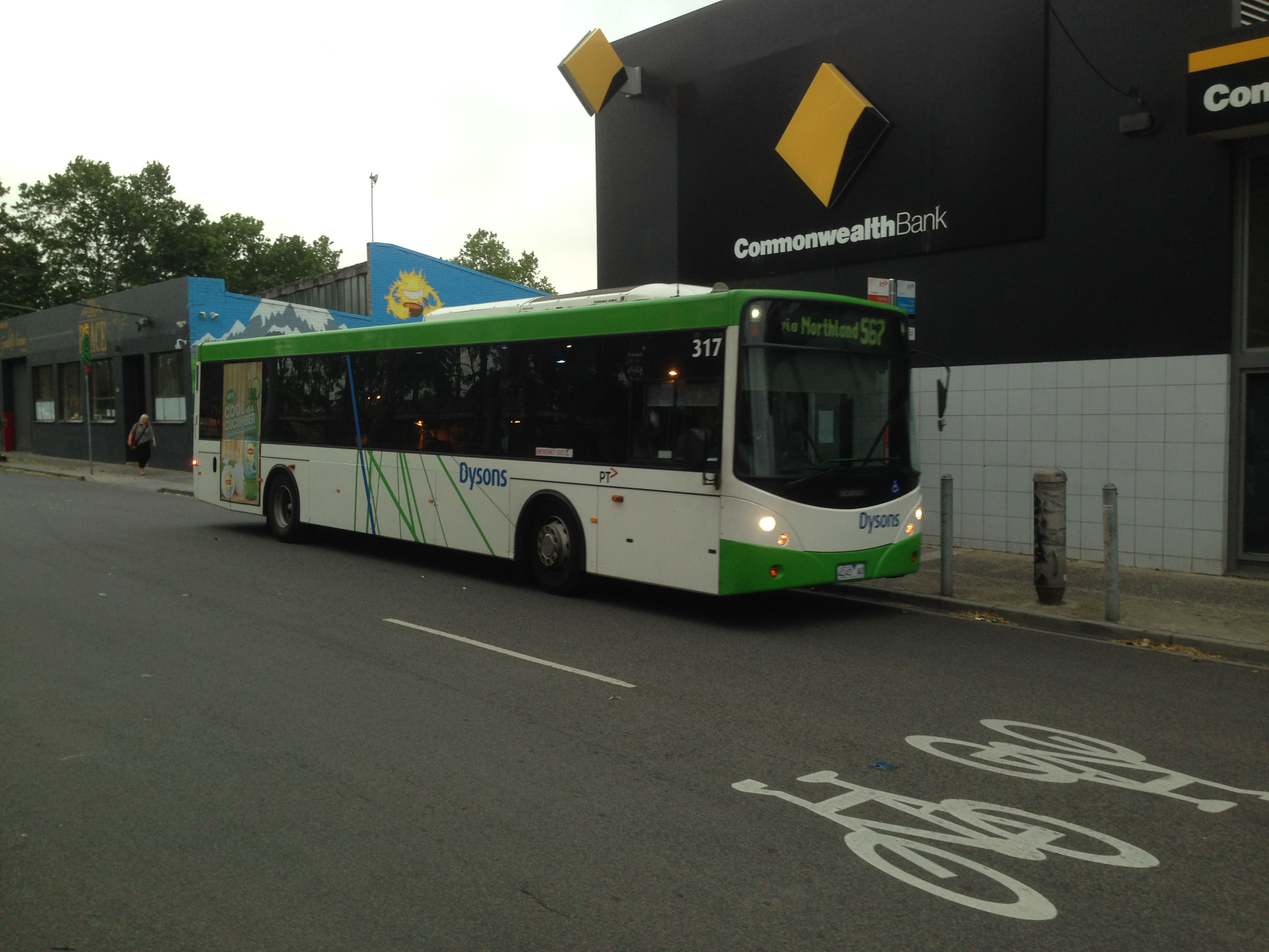 At Fairfield Station early one evening in November 2015 is sister vehicle 317 (4243AO). Both buses date from late 2005.