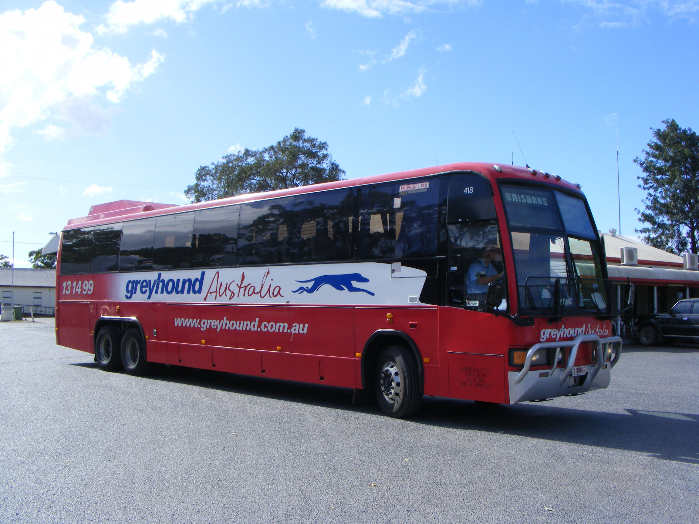 Seen at Cairns Coach Station in Queensland in July 2009 is Greyhound Australia's 418 (418DOG), a 1996 MCA Classic III ostensibly to Brisbane, though coaches can be switched at the Townsville interchange.