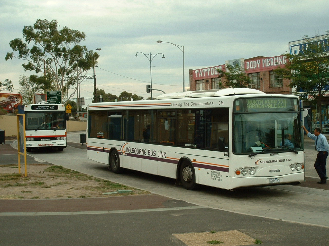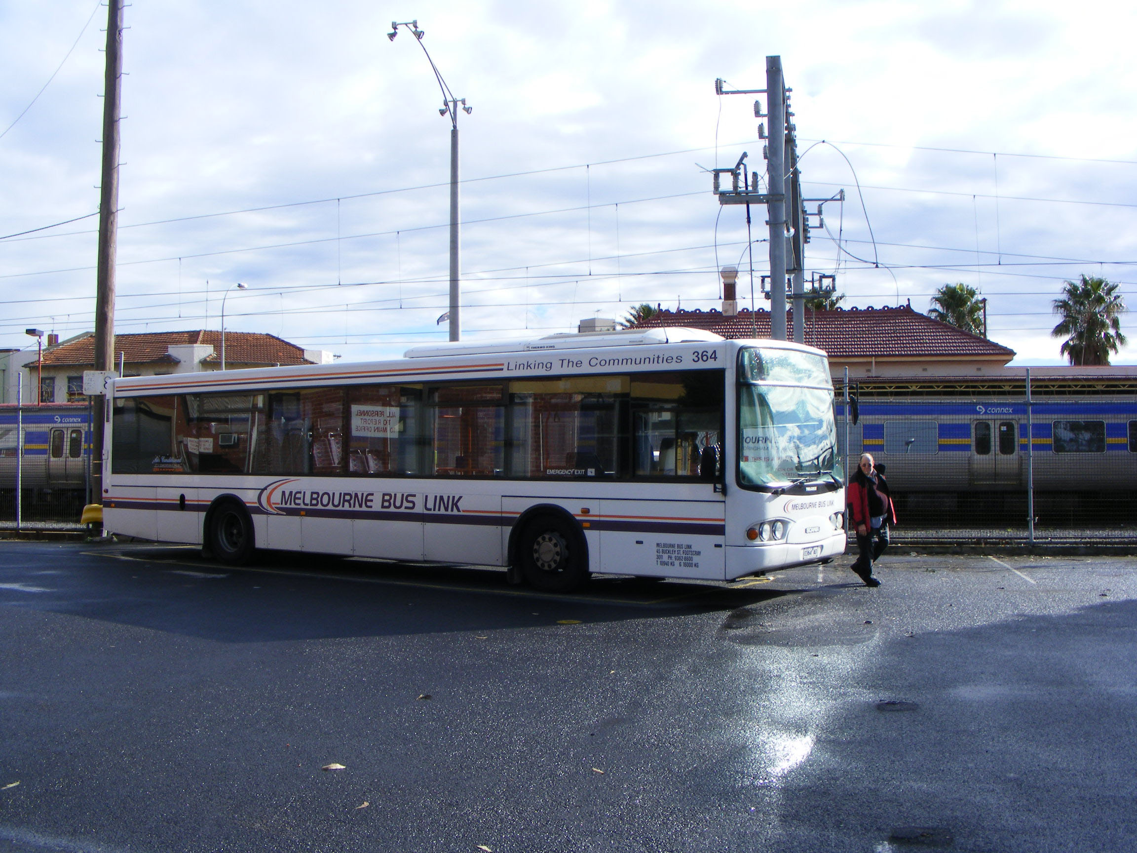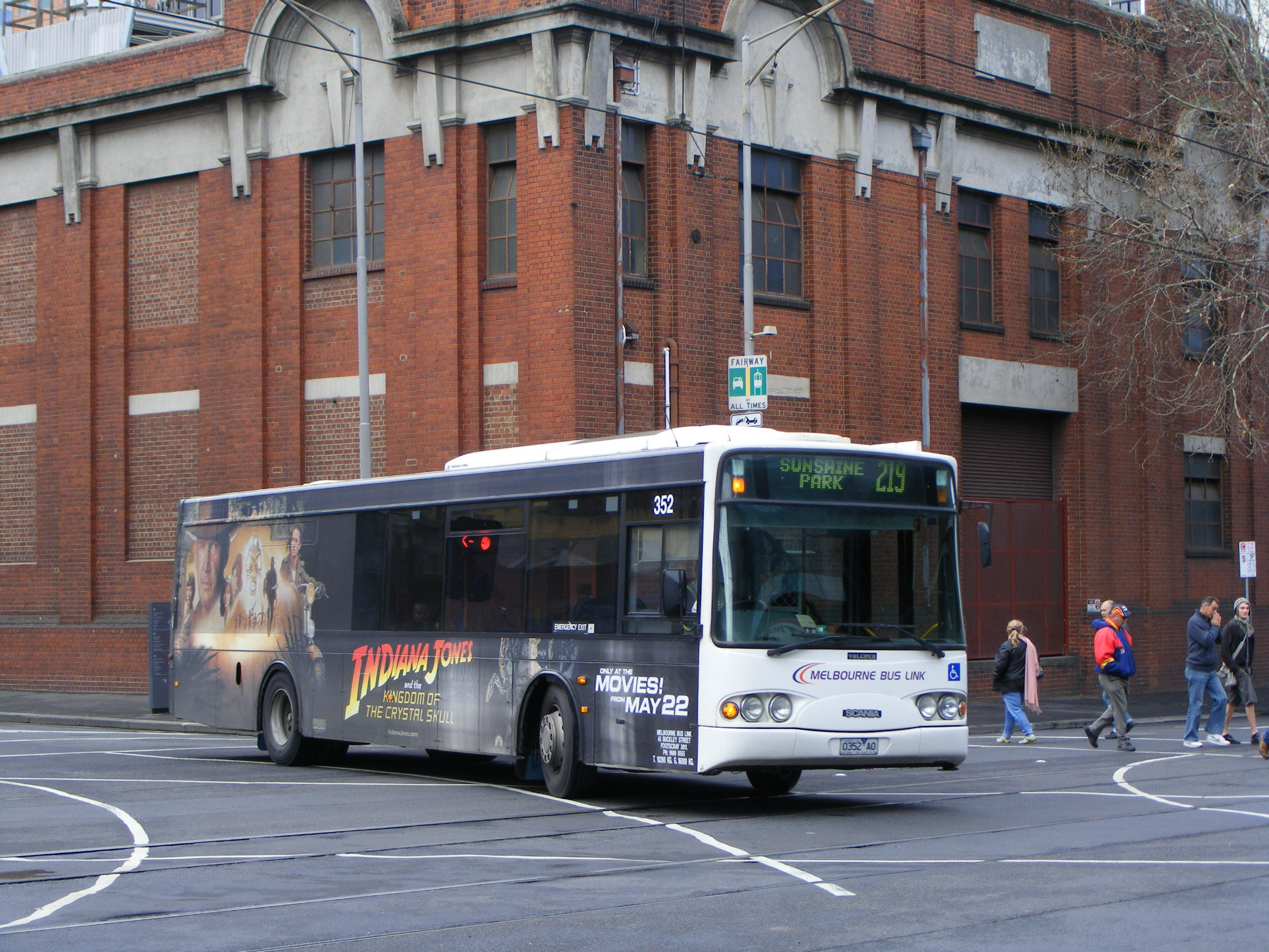 Outside the Southern Cross Railway Station in August 2008 is Scania L94 the first Volgren CR222L bodied bus in Australia, having been built in April 1999. Melbourne Bus Link 352 (0352AO) is still advertising the Indiana Jones movie released three months earlier. It became an all over advert for ABBA World subsequently. It is the first of what became Melbourne Bus Link's standard model, the Scania/Volgren - as used by co-parent, Dysons. |