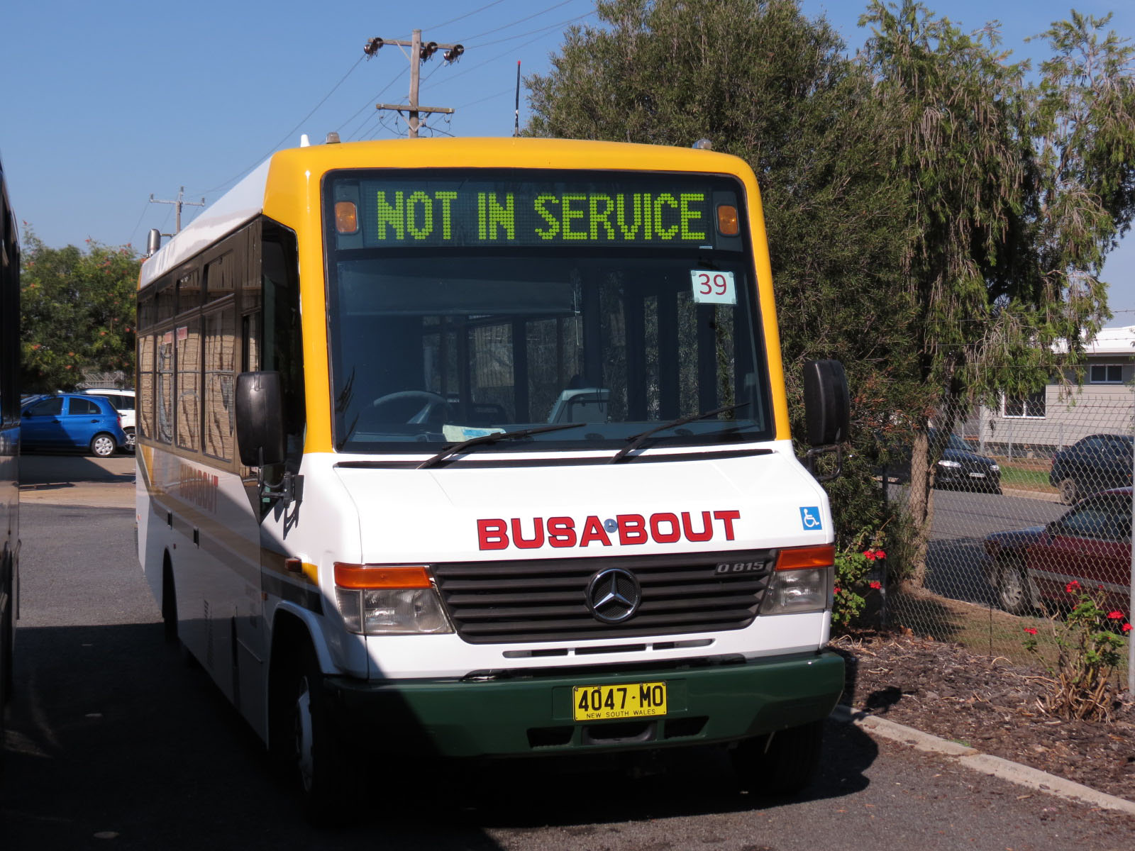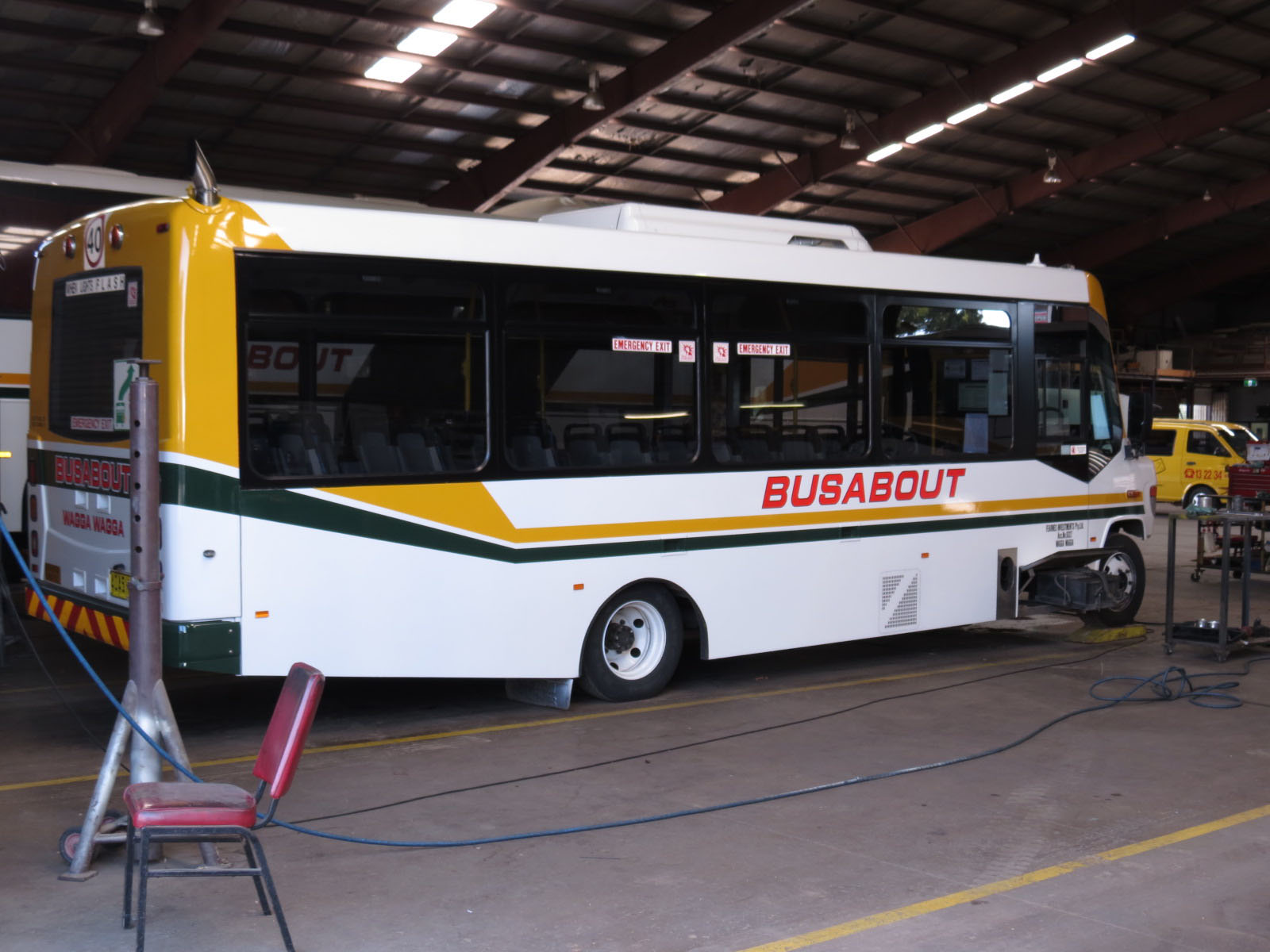 Fellow Custom CB20 bodied Mercedes 815DL, seen receiving attention in the Busabout Wagga Wagga depot on the same day was MO09 (4045MO). |