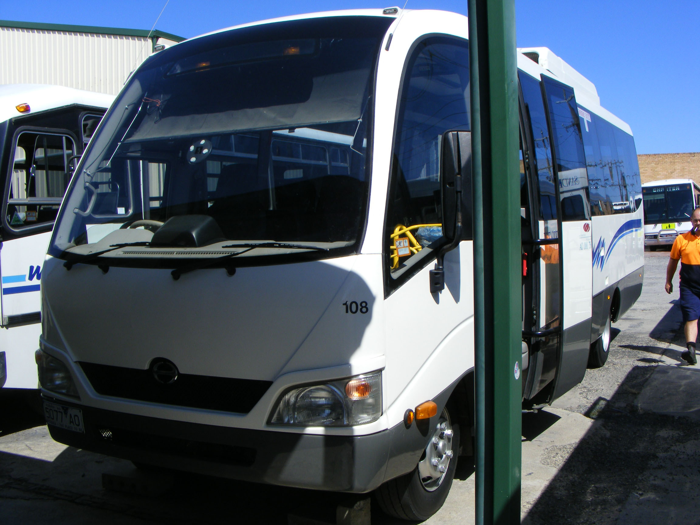 In January 2012 108 (5077AO) was one of a trio of Dineen vehicles at Luna Park in St Kilda. Though branded as Westernport, the 2007 UBC-Chiron bodied Hino RB8 was with Sandringham & Brighton. |