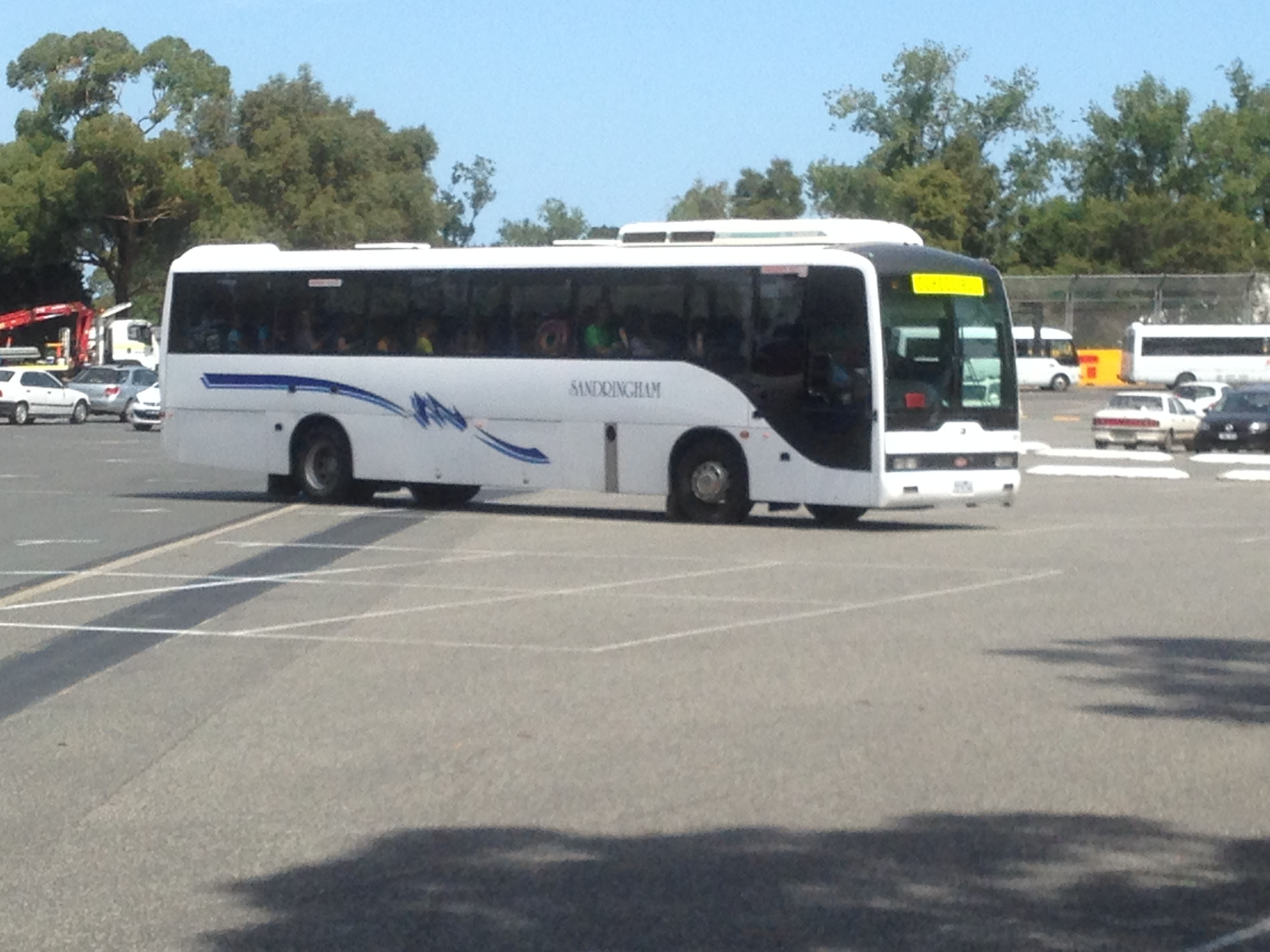 More recent additions to the Sandringham & Brighton fleet have been of MAN manufacture like this 2003 Mills-Tui Orbit 18.280, 128 (7579AO). New to Olympic Coaches of Port Melbournee as 5047AO, the bus spent time with Dineen's Warragul Bus Lines but joined Sandringham from South Australia's Willunga Charter Service. The coach is seen at MSAC, the swimming and sports centre at Albert Park in Melbourne in February 2015.