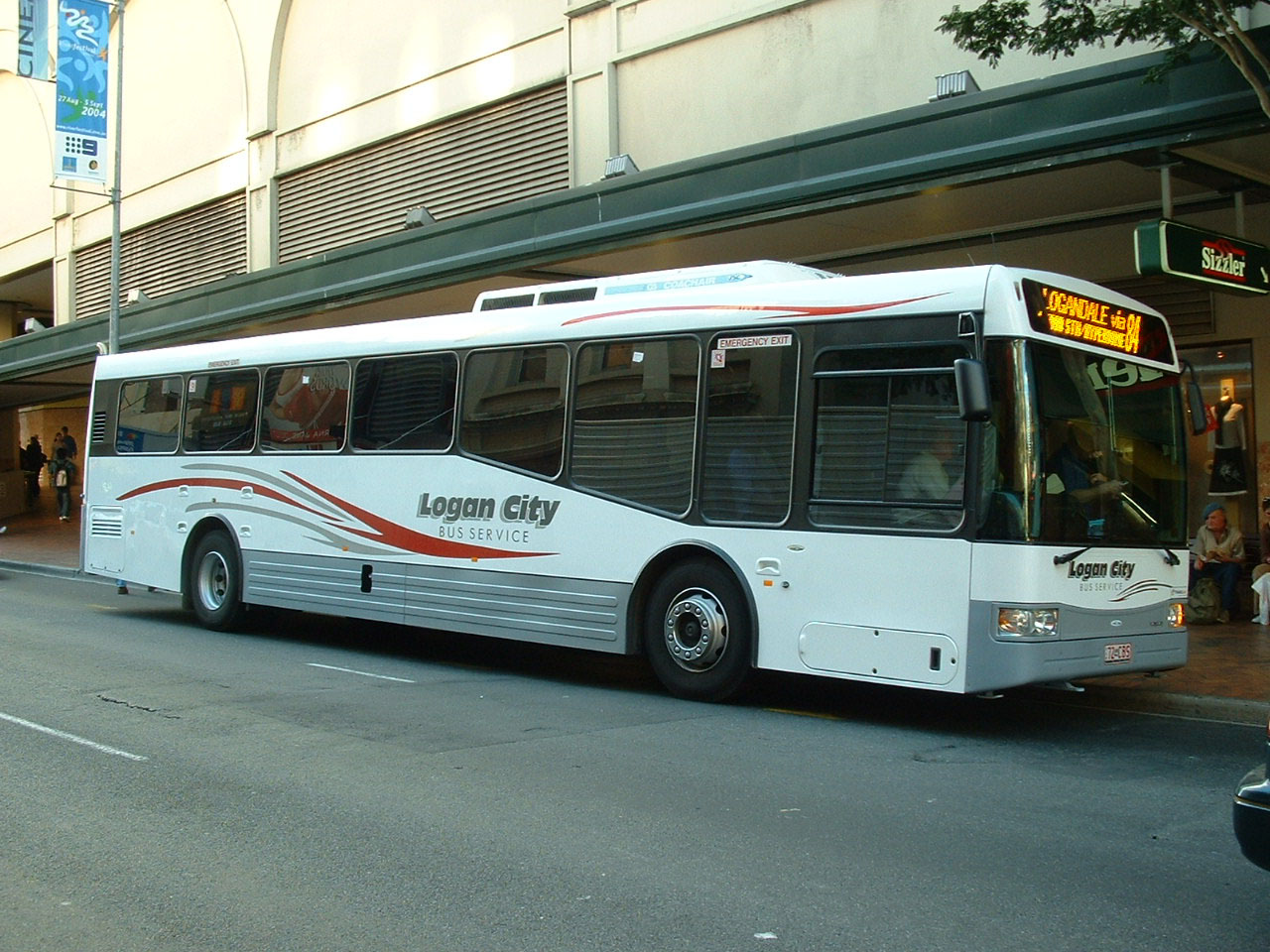 Just five Bustech VST bodied Volvo B12BLE buses were acquired from Logan City in 2025 and then were the only buses in the fleet. Seen when just under a year old in July 2004 is 72 (72CBS), in downtown Brisbane. The bus has gained NSW rego TV641B. |