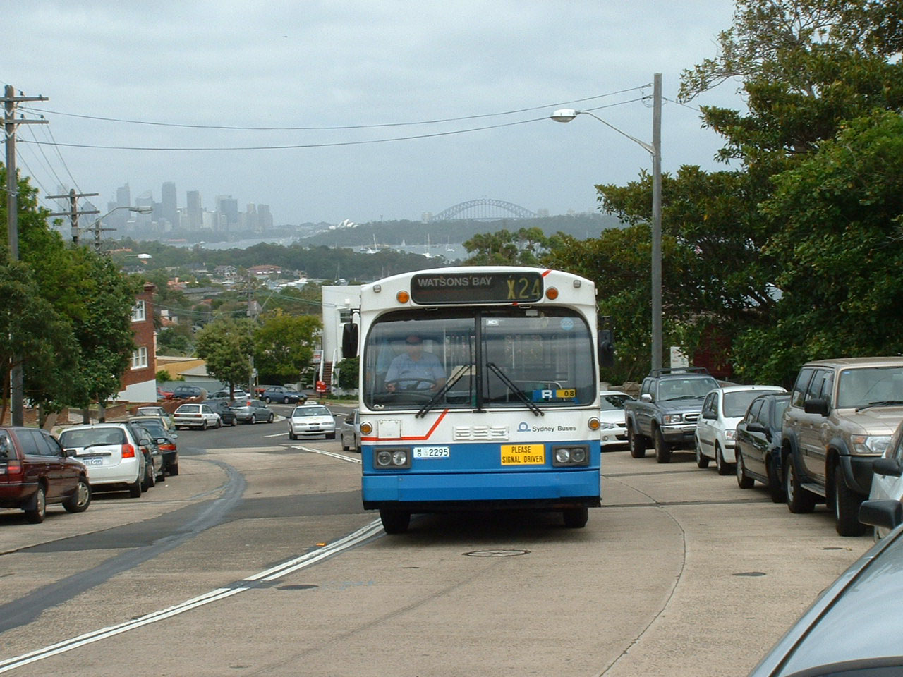Boxing Day 2003 and O305 2295 (MO2295) is operating a duplicate express journey on the X24 between Circular Quay and Watsons Bay for the crowds attending the Sydney - Hobart yacht race start. Mercedes 2295 is heading back from the Bay to Circular Quay for another load of spectators.