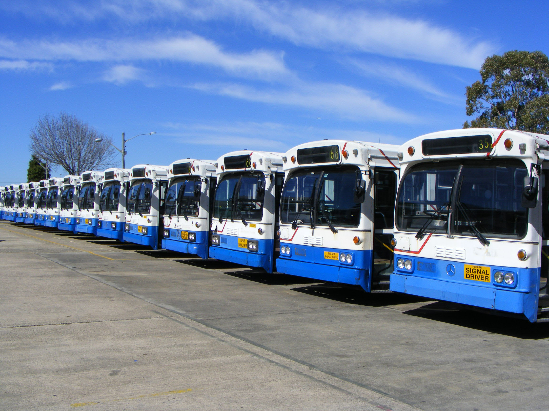 August 2009 and large numbers of withdrawn Mercedes O305 and articulated O305Gs are lined up for disposal at the former Tempe depot.