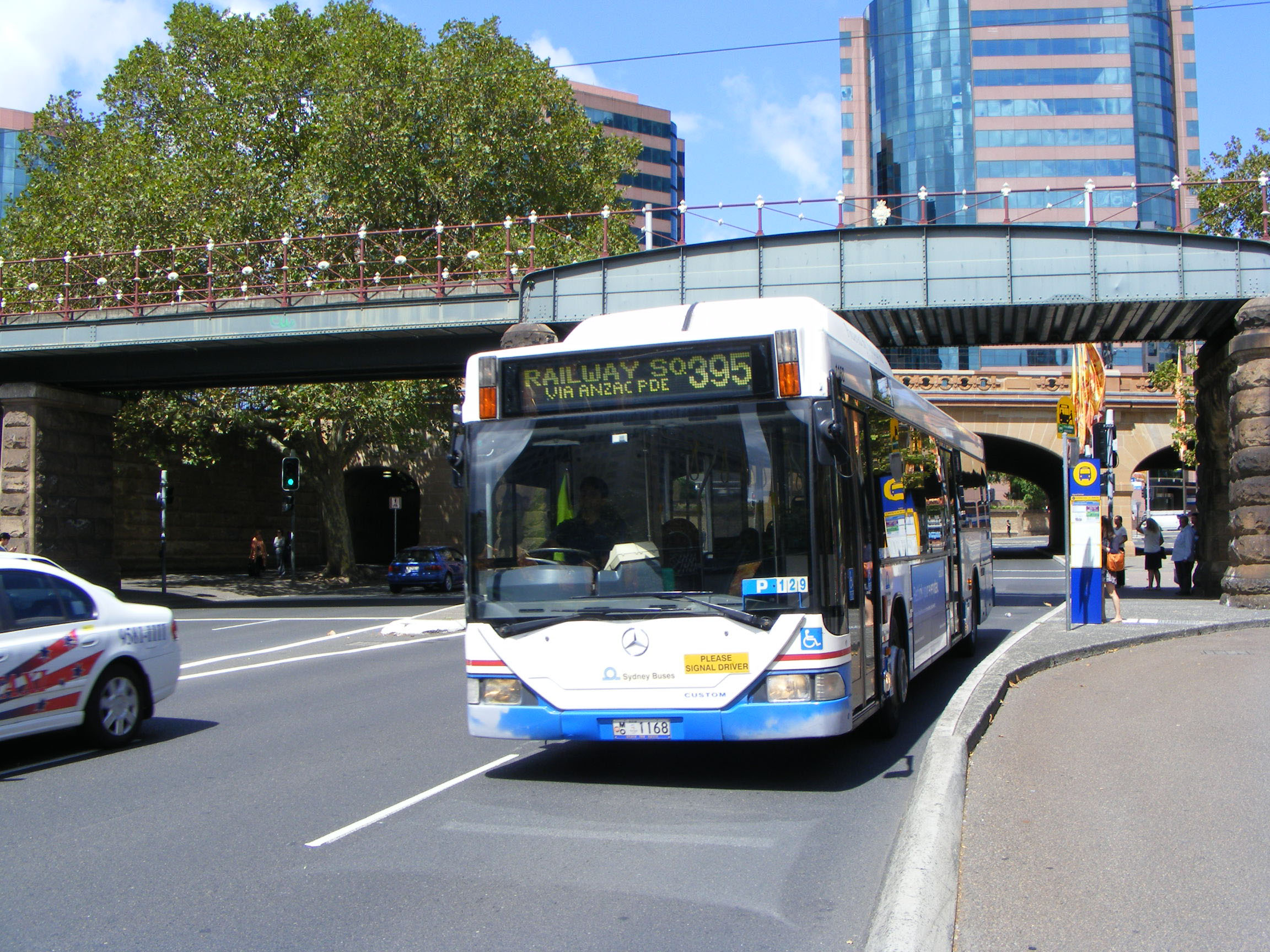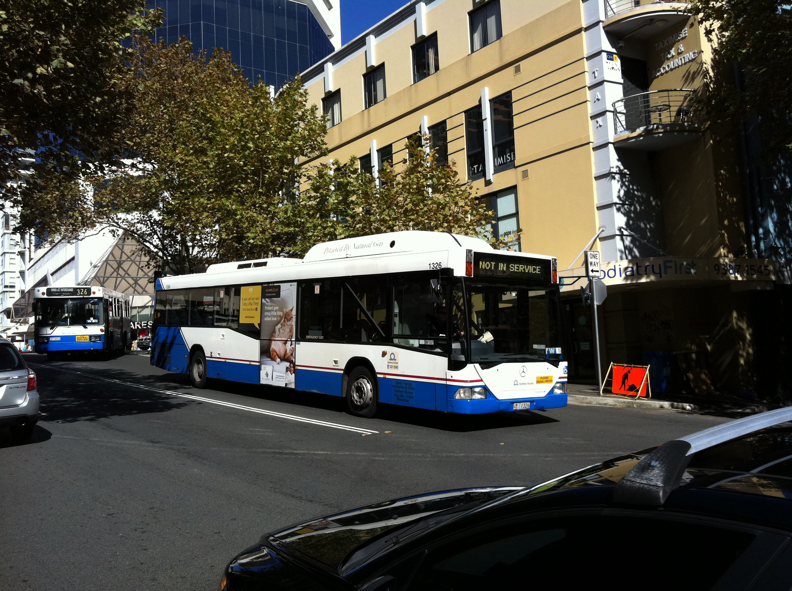 Passing through Randwick on the 353 on its way to Eastgardens via Coogee in March 2017 is Custom Citaro 1148 (MO1148) which has been stripped of some of bits of its red stripe.
