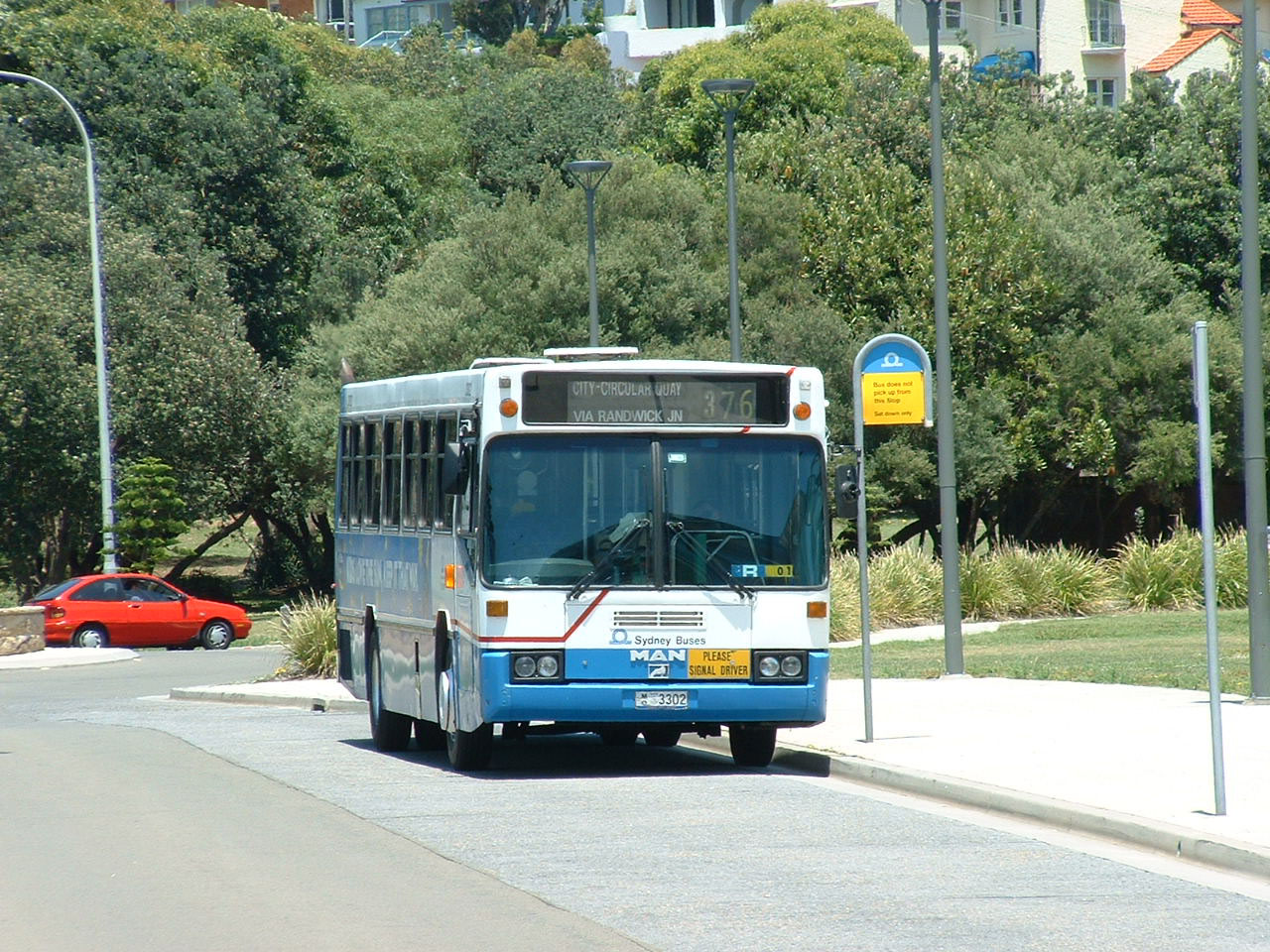 A MAN at Manly. On layover near the ferry terminal is 3662 (MO3662). Thirty of these MAN 11.220 low floor 32 seaters existed in the STA fleet but have now all gone.