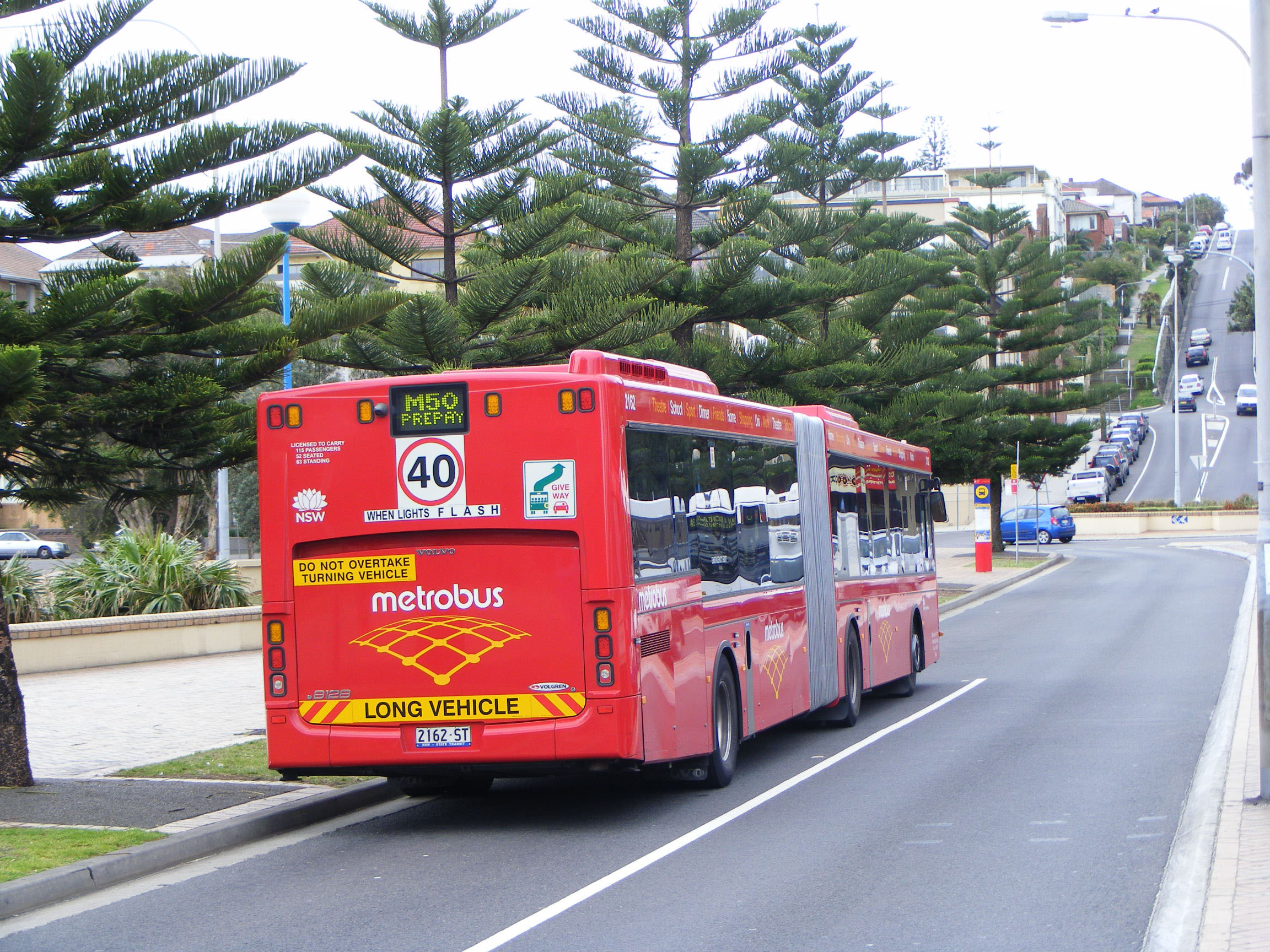 By late 2011 the Metrobus artic fleet was much in evidence across the city on the complete network of new M-prefixed routes. Volgren CR228L Volvo B12BLEA bodied in a new plant in Newcaste, 2066 (2066ST) is on the M40. With no more orders forthcoming, the Volgren Newcastle plants was shut down, but at least the buses were built in the state!
