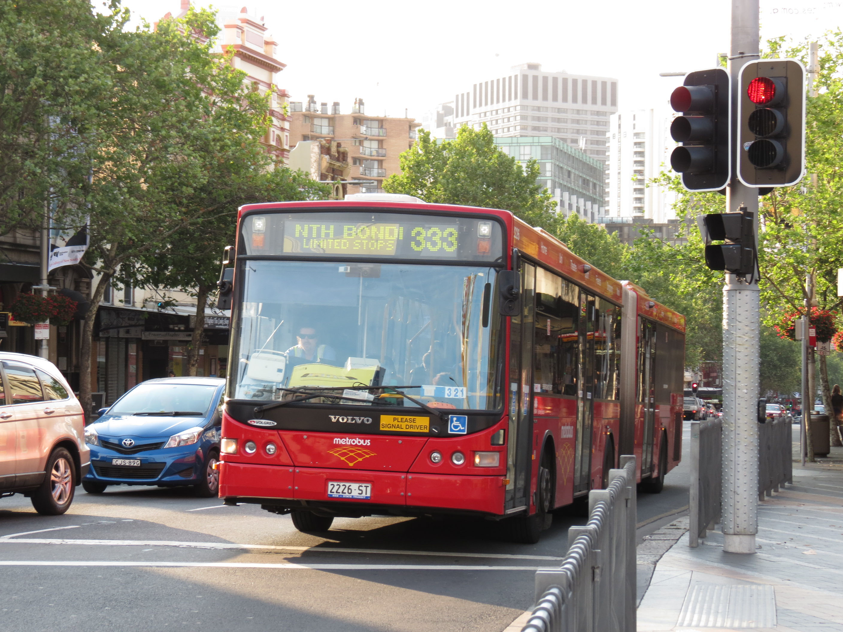 Seen two years later 2226 (2226ST), normally allocated to the M40 out of Waverley depot is seen doing a turn on the 333 leaving the city for Bondi Junction, Bondi Beach and North Bondi. The route is normally home to fleet liveried Volgren bodied Volvos artics.