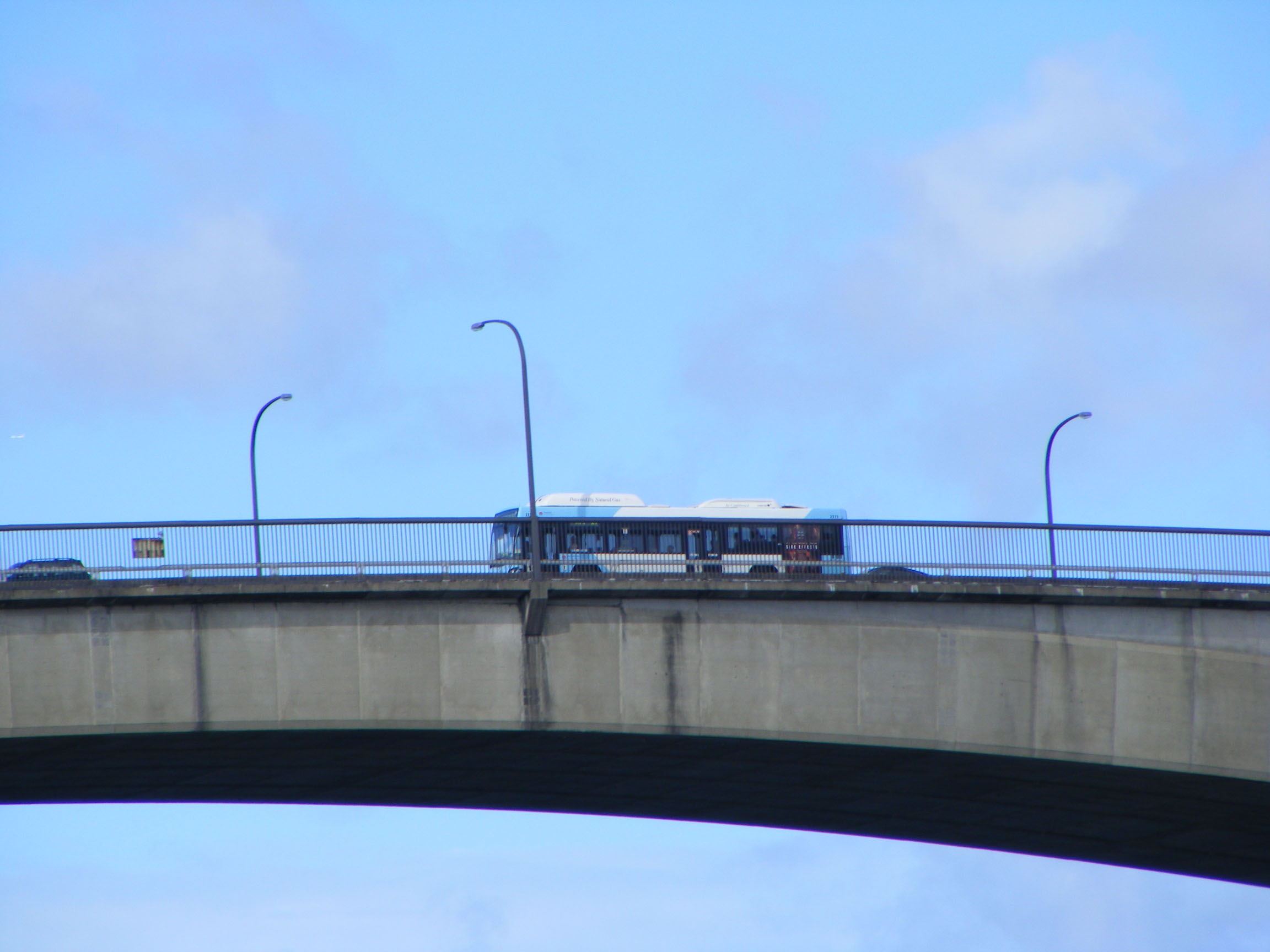 Flying high over the Parramatta River in February 2013 is O500LE 2315 (2315ST).