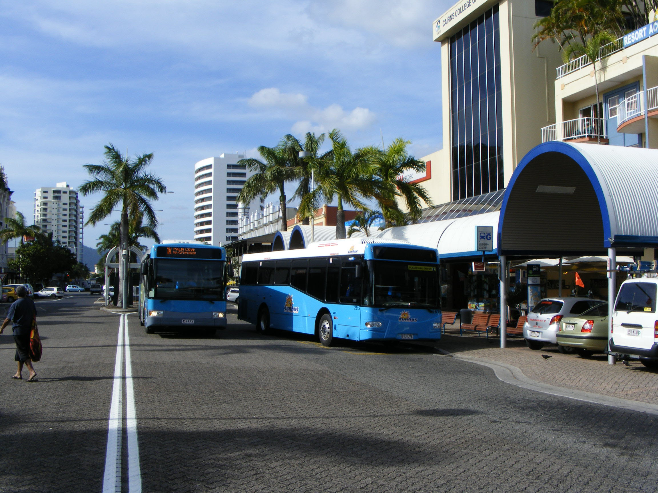 The change in front end treatment can be seen on this pair of Bustech MDi. On the 1X to Palm Cove is 2008 delivery 2614 (459KXV) alongside brand new 2615 (813LVE).