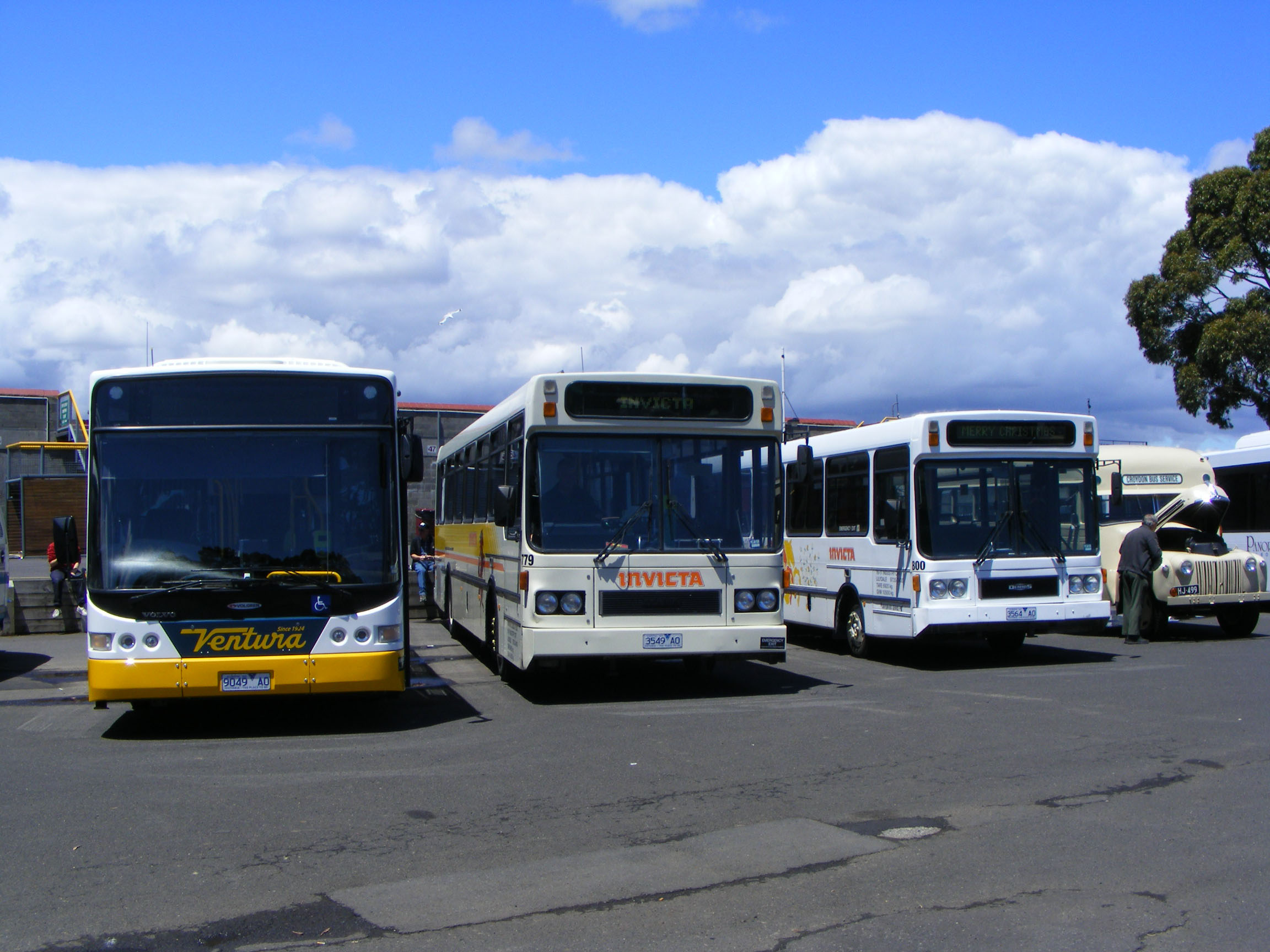 The Invicta display at Sandown included the vintage Croydon Bus Service Ford, and three Volgren bodied buses of varying vintage. A high floor Dennis Dart, 800 (3564AO), and Scania L113CRB 779 (3549AO), and the new Ventura branded Volvo B7RLE.