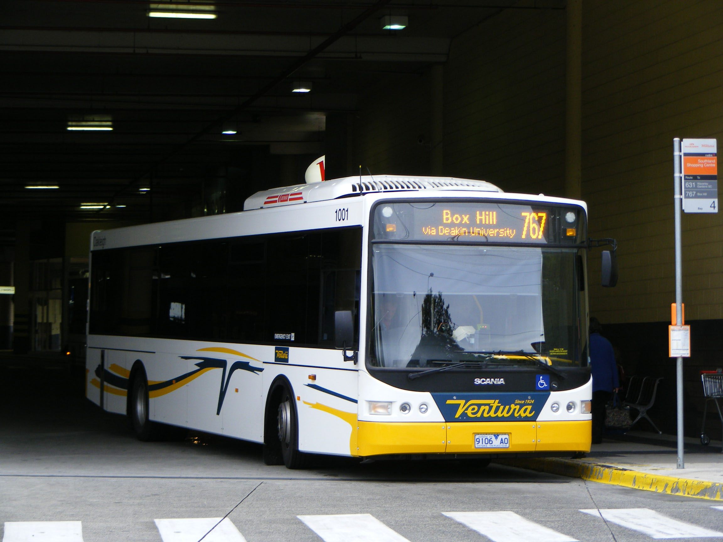 At Southlands the previous month was a true Ventura vehicle, 1001 (9106AO) out of Oakleigh depot and about to head across the suburbs to Box Hill on the 767. This bus however is a Scania K280UB.