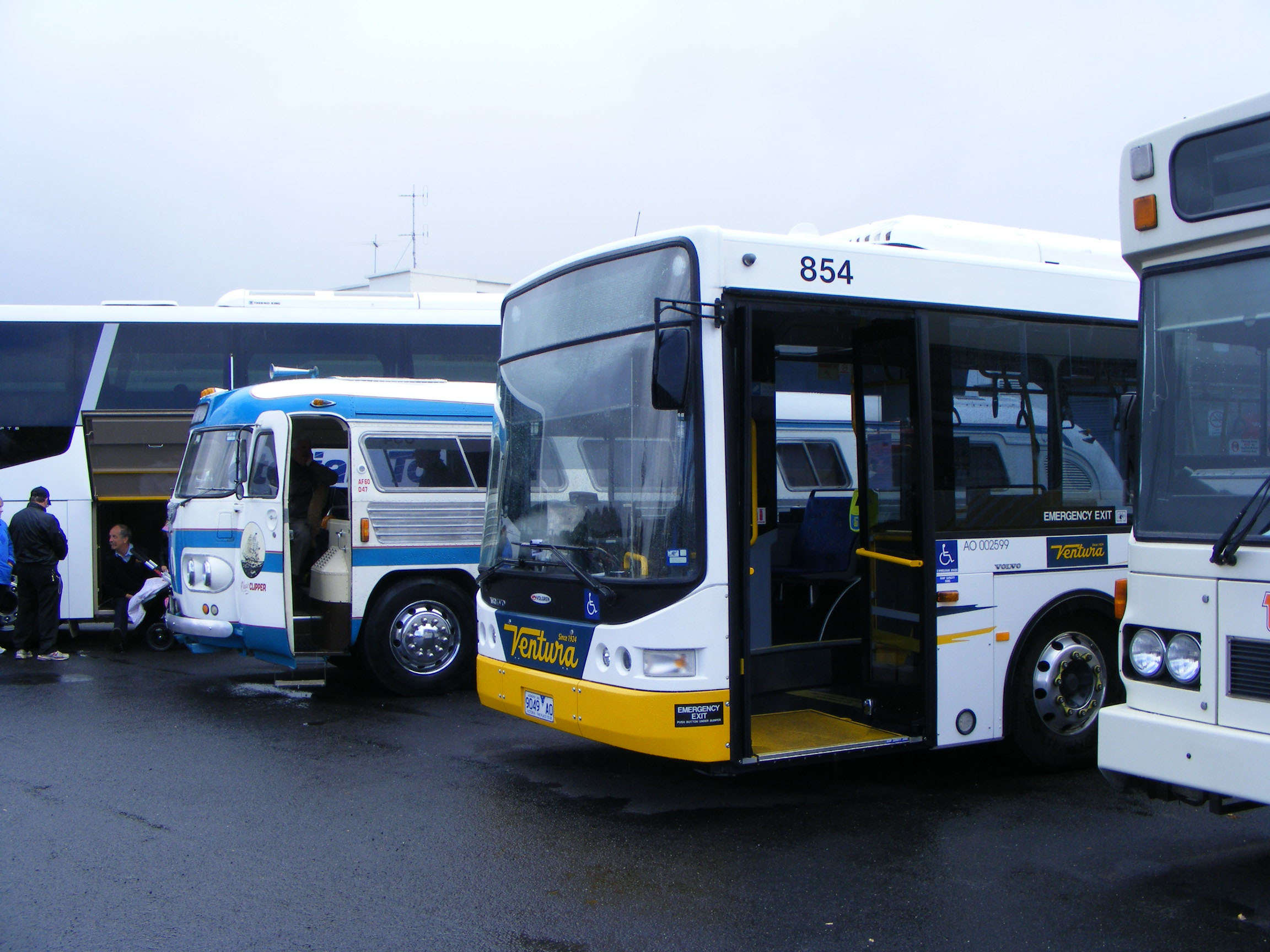 The new Ventura group livery was evident in this sunny afternoon shot of 854 (9049AO) at the 2012 Sandown Truck & Bus Show. Grenda was already eliminating the variety of liveries amongst its subsidiaries whilst retaining their fleetnames. The Ventura fleet identification is confined to the depot name situated above the windows at the rear, in this case Lilydale is just visible, but clear if you click on the picture for the larger image.