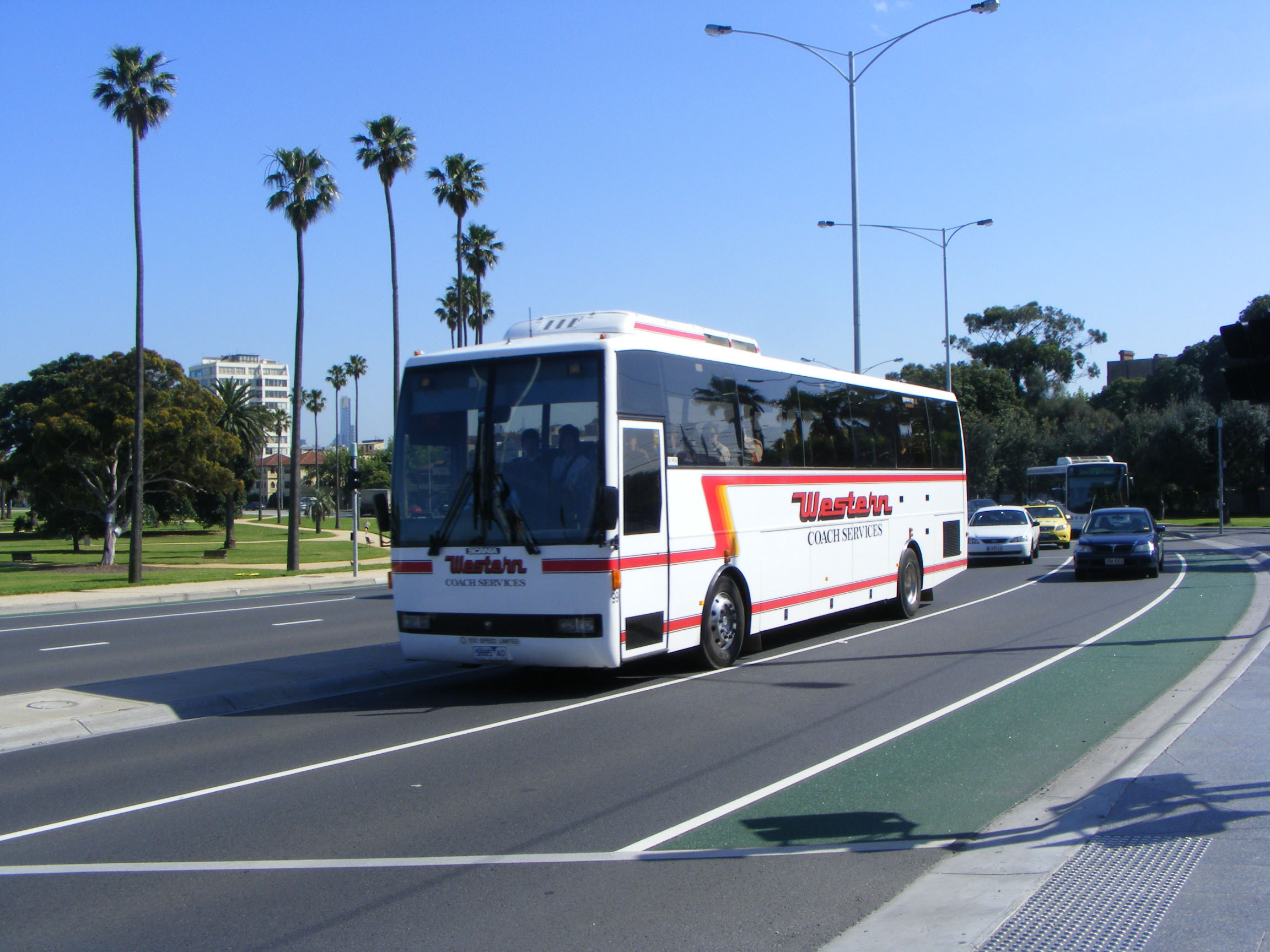 Following 102, Scania K93CR 99 (5885AOAO) is pursued by a Melbourne Bus Link Scania/Volgren running light. Both Western coaches have Autobus coachwork, date from 1998 and are part of a small batch acquired secondhand from Oz Experince in Queensland, a company bought by Greyhound in late 2011. |