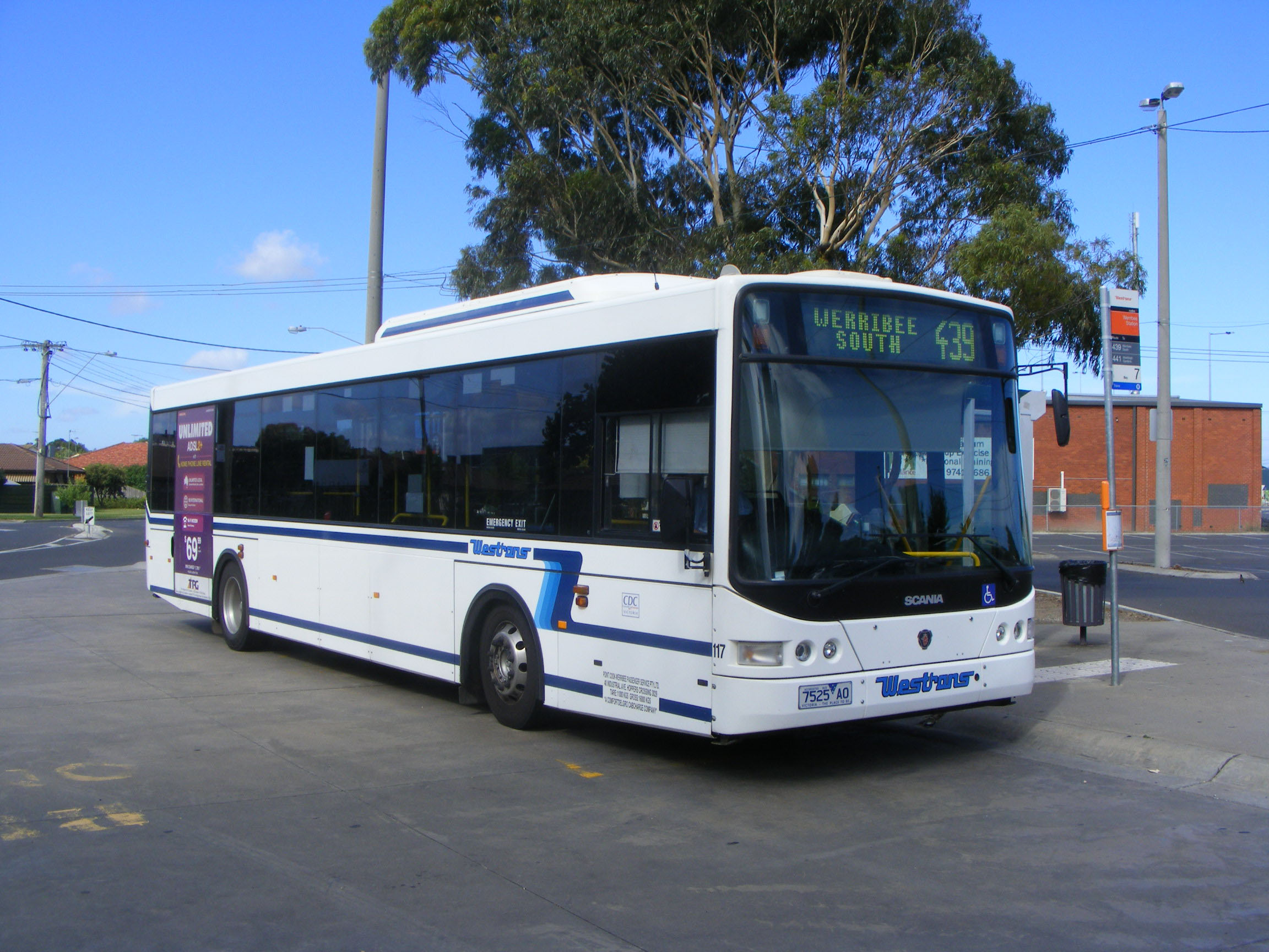 Seen in December a year later at Werribee Station is Scania K230UB 117 (7525AO).