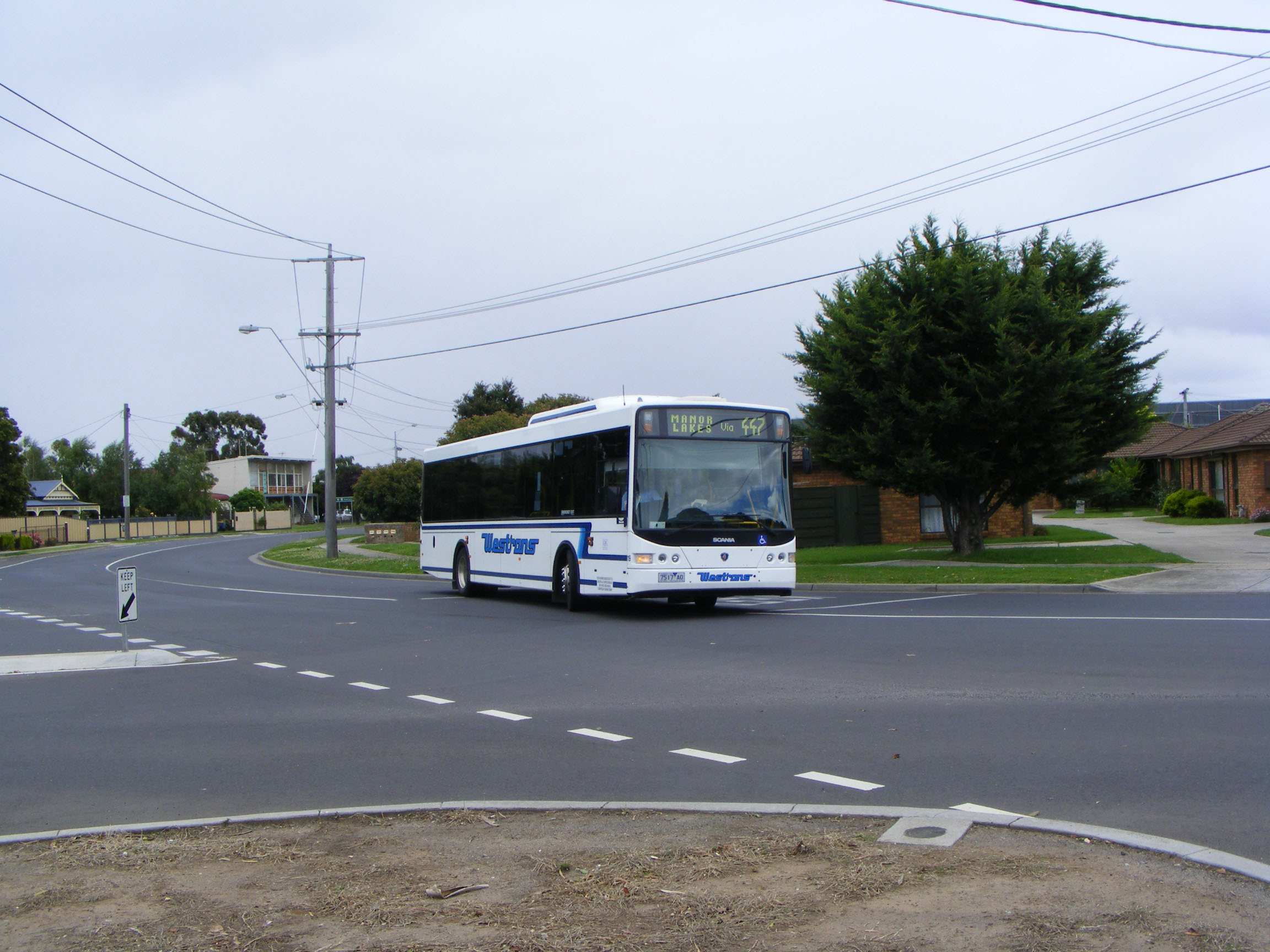 At Werribee Station in November 2011 ia Volgren CR228L bodied Scania K280UB 115 (7633AO) of 2009.