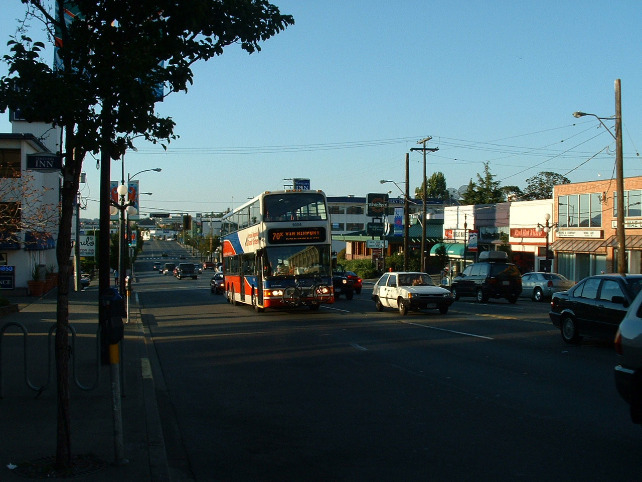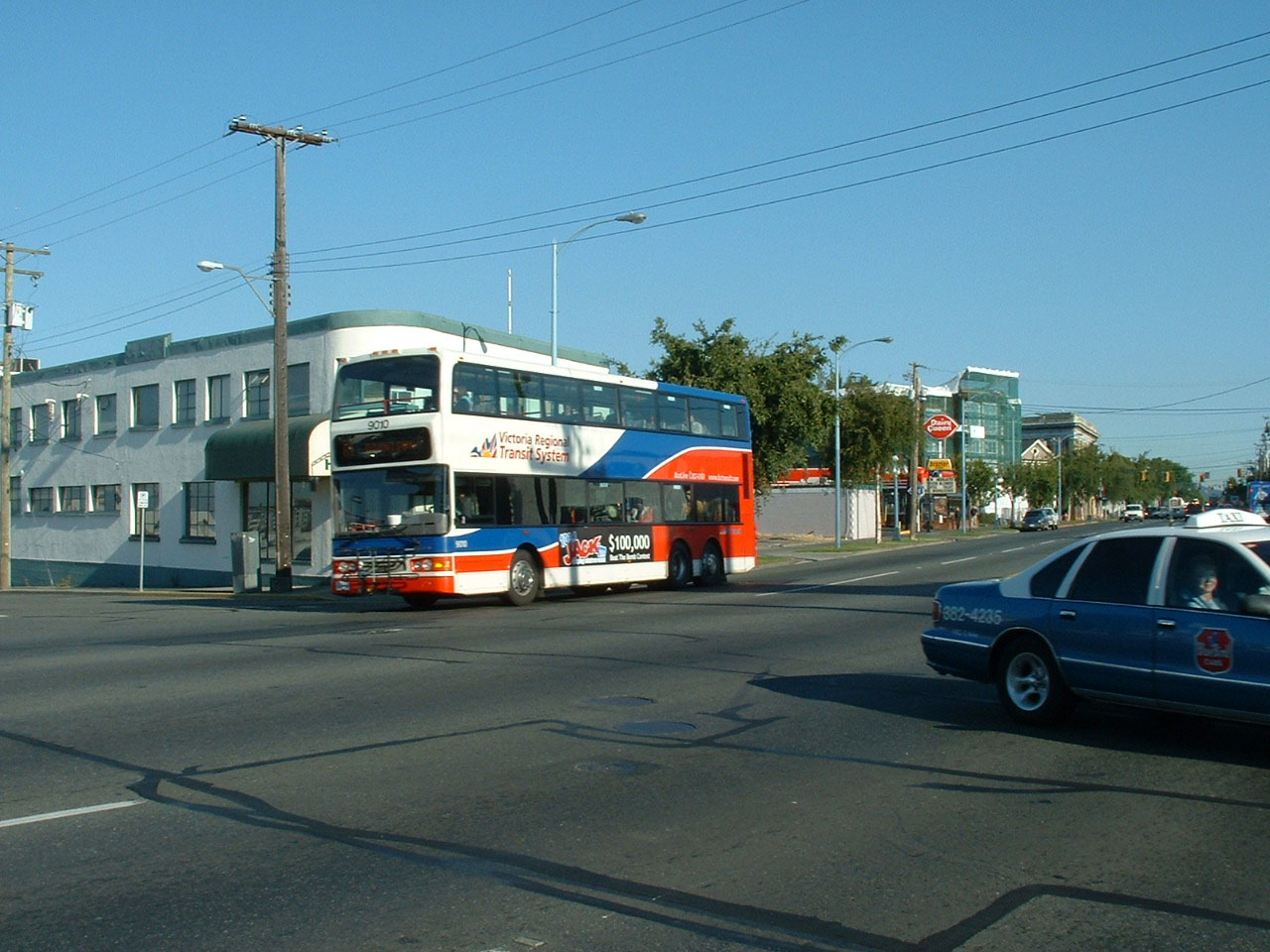 Dennis Trident 9010 is seen a year later further north of the Trans-Canada Highway 1, or Douglas Street as it is known locally. The firt ten Duple Metsec DM5000 bodied Dennis Tridents, 9001-9010, arrived in 2000.