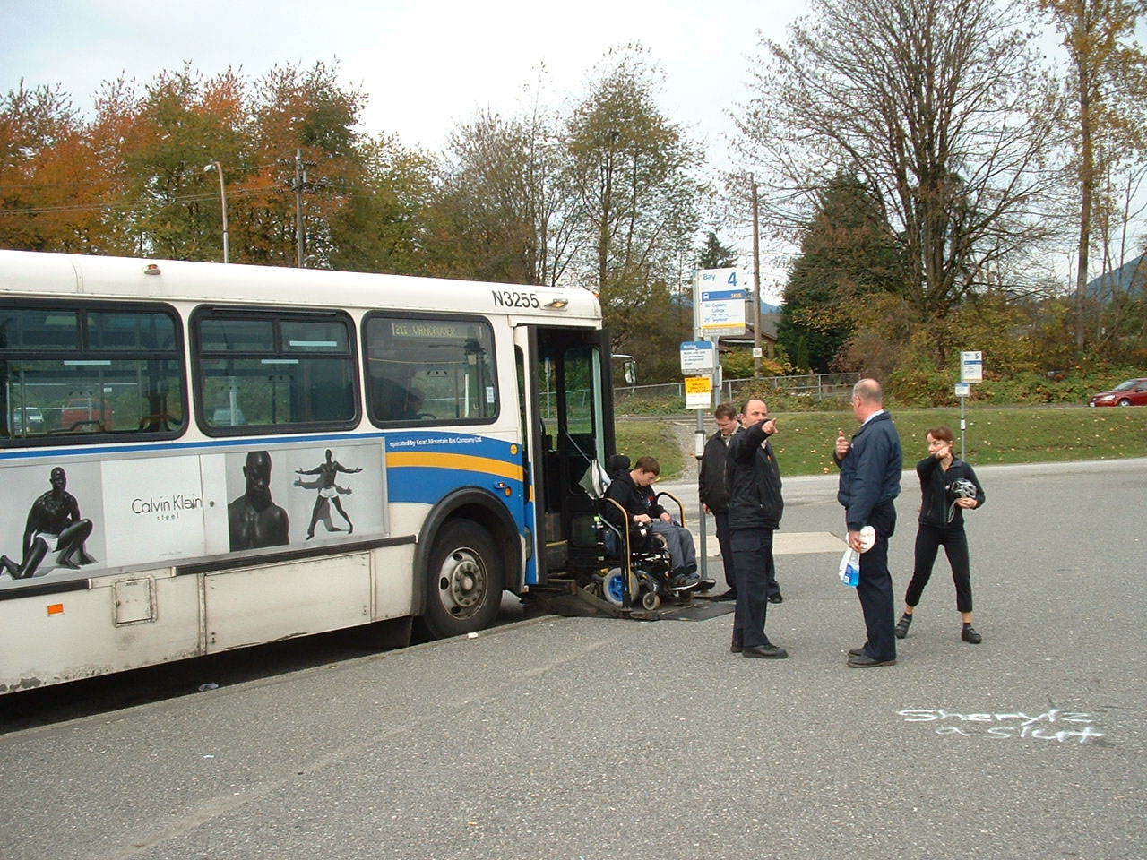 This wheel chair bound passenger descends from Flyer N3255 at Phibbs.