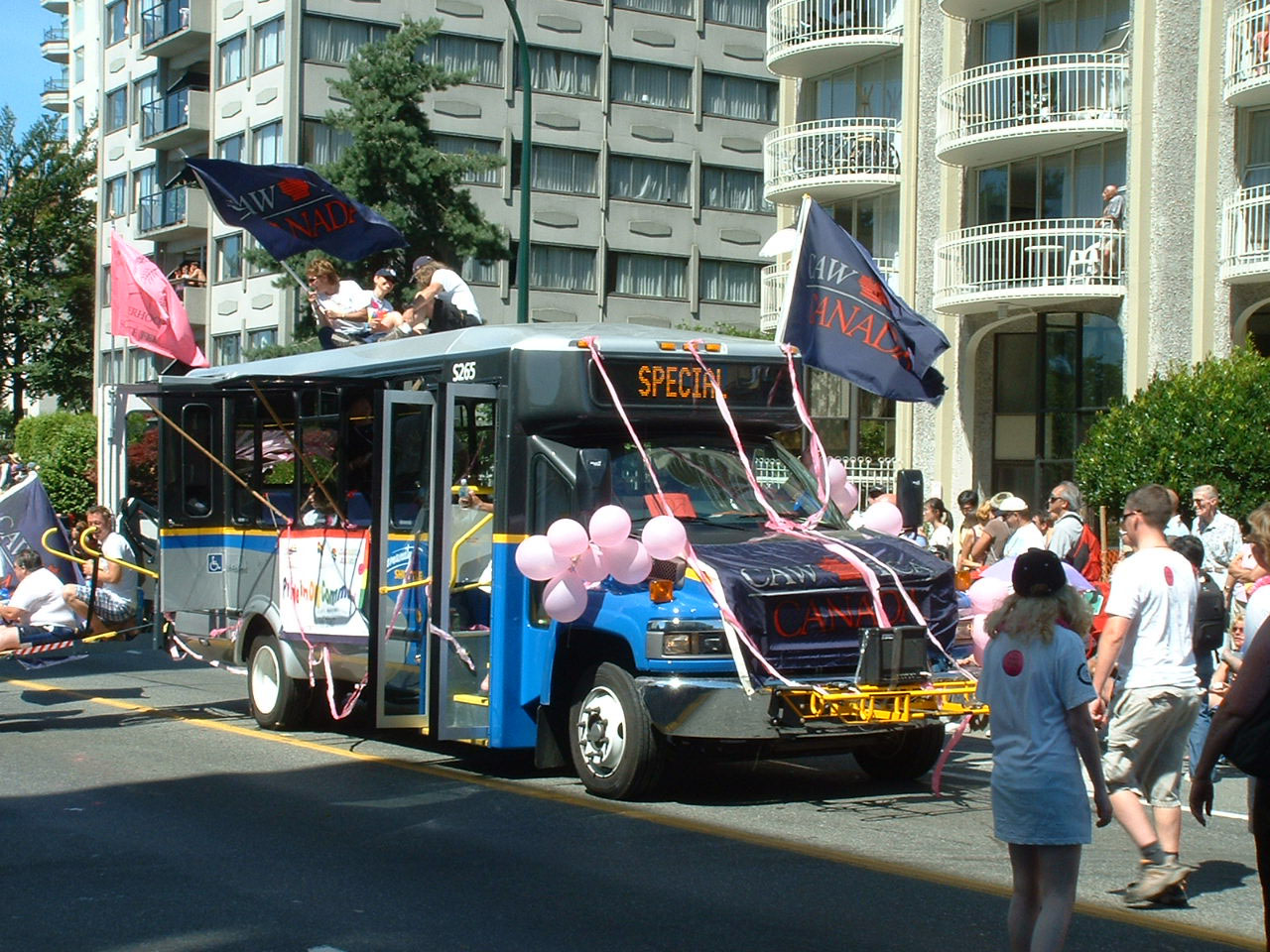 Joining NovaBus LFS 9624 on the annual Vancouver Pride Parade on 5 Aug 2007 was this GMC C5500 with El Dorado Aero Elite bodywork - S265.