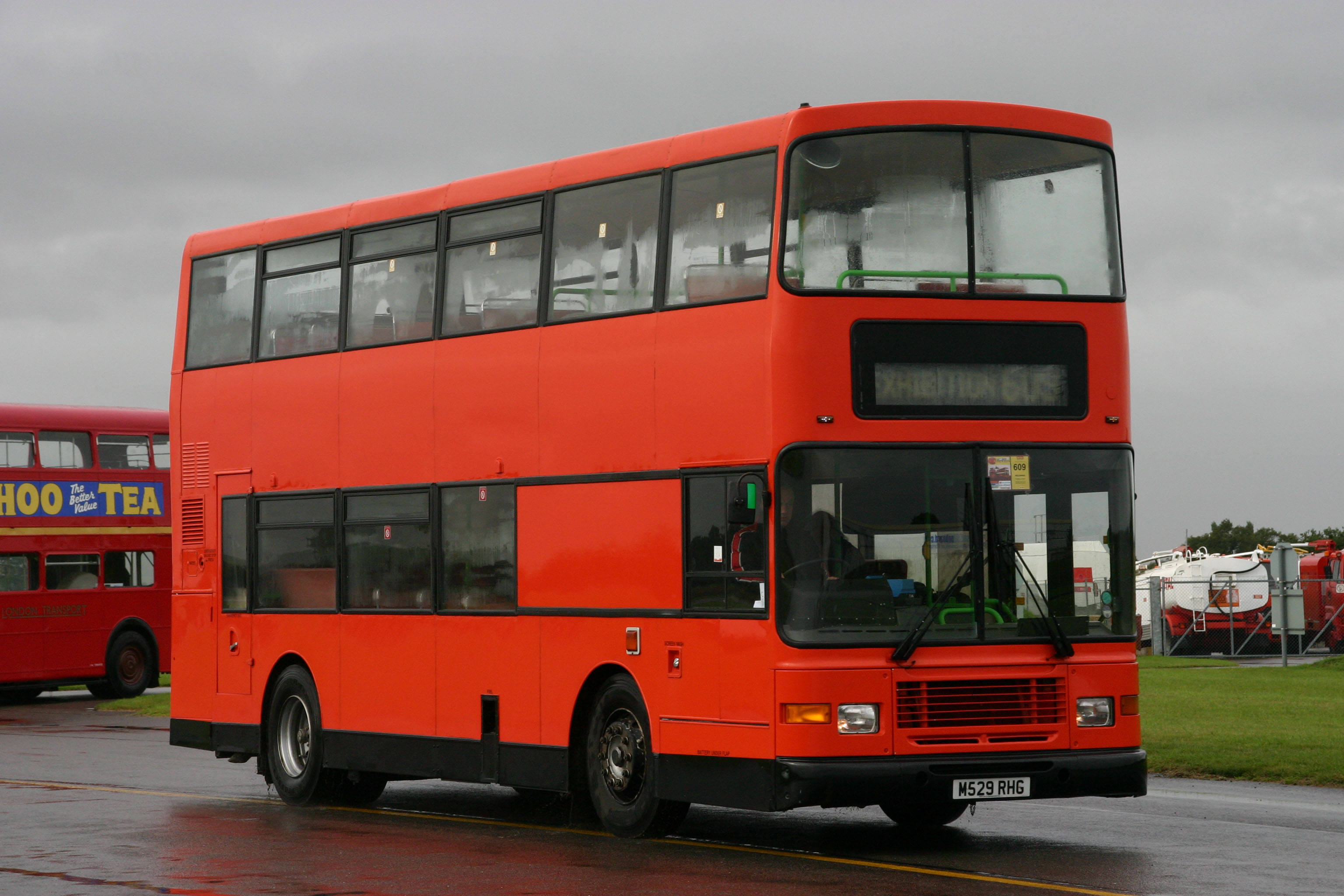 Former Rossendale Alexander Royale bodied Volvo Olympian 29 (M529RHG) is seen arriving at Duxford in 2010, looking as though it has come from First Glasgow. |