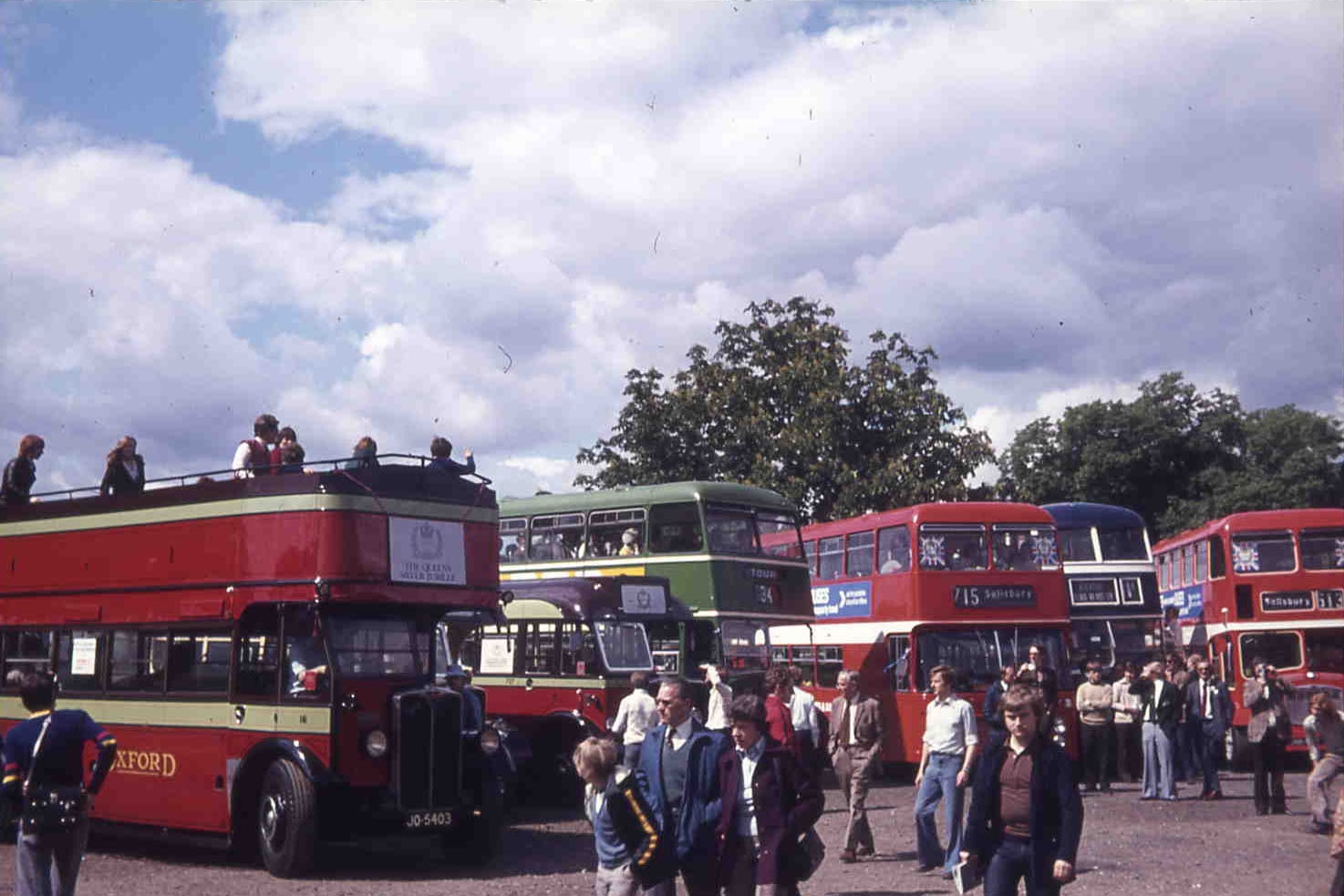 Buses and coaches gathered by the Thames in Windsor for the SHOWBUS Silver Jubilee Run to Hillingdon in June 1977. Highbridge Bristol KSW6G 8335 can be seen with two Oxford buses, a pair of Wilts & Dorset Bristols and a Lytham St Annes Titan.