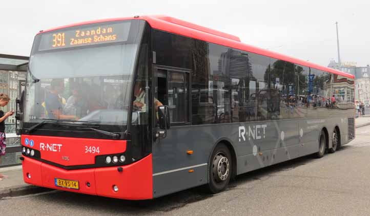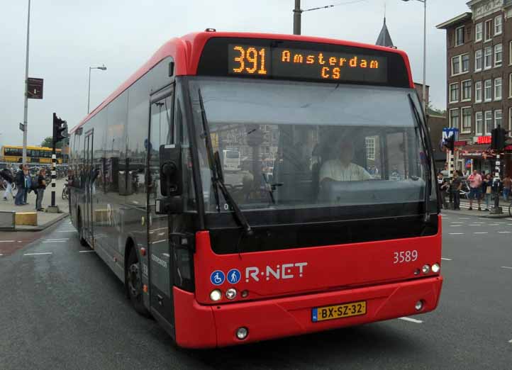 A network of premium services marketed as R.NET employs more than one contractor. This Connexxion Berkhof Ambassador bodied VDL SB200 3579 (BX-SV-55) awaits passengers outside Amsterdam CS in July 2014.