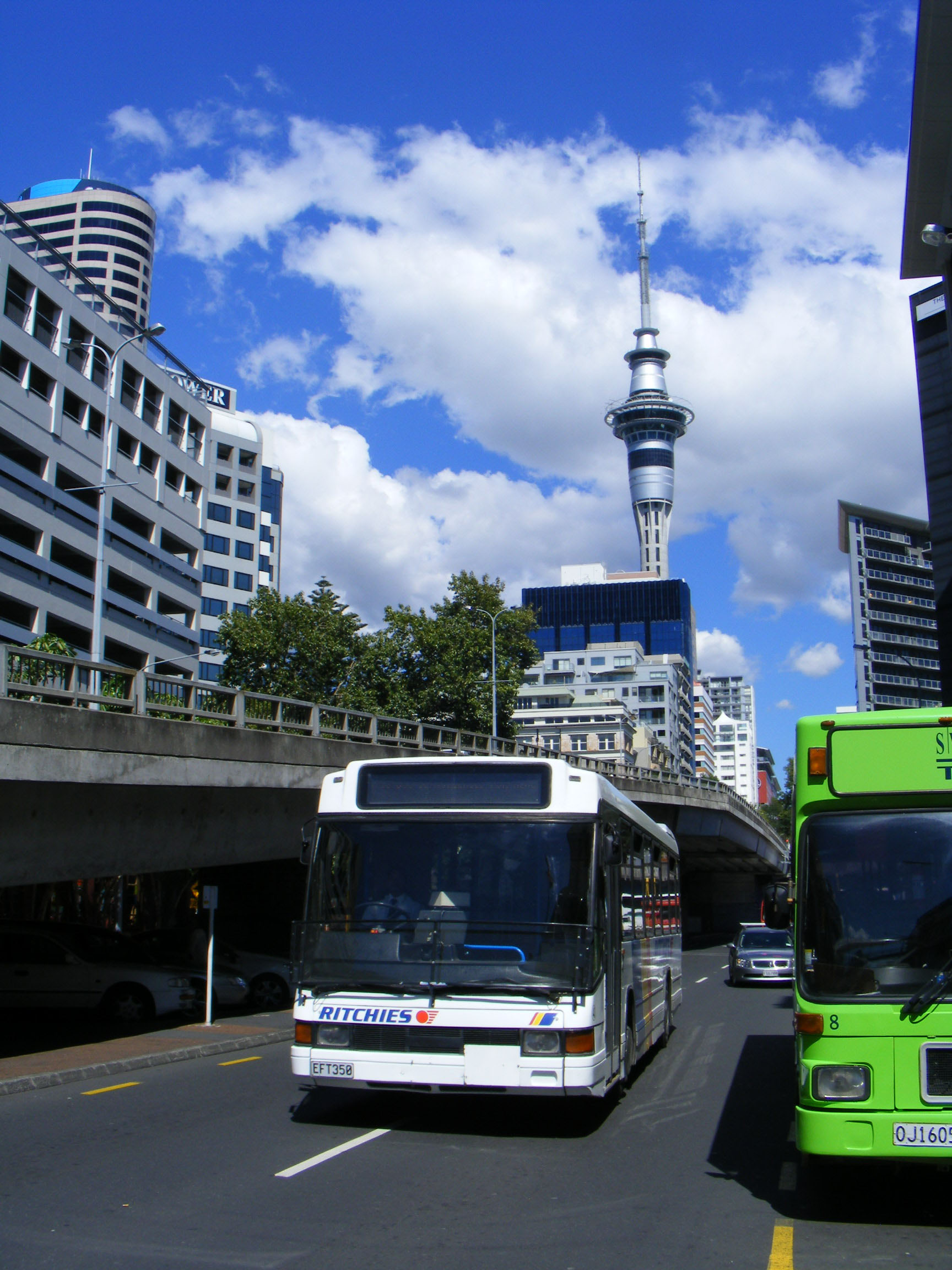 Ritchies had five Deltas from Reading Buses, PBC Party Bus taking a further five. Seen in the city is 443 (EFT350) alongside Swasbrook Tours MAN SL202 8 (OJ1605) new to RedBus as 658 in 1989. Strange to think that the bus delivered to Reading Buses in 1996 as 518 (N518YTF) would end up in sight of the Auckland Sky Tower seventeen years later.