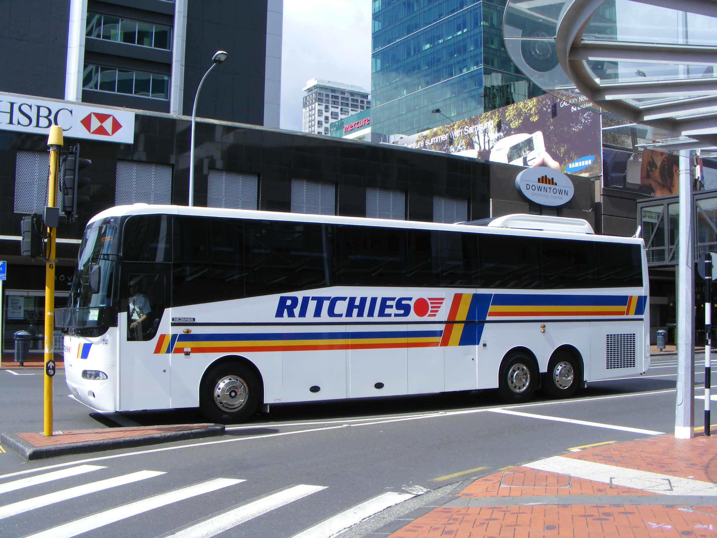At the Hamilton Bus Station one evening in March 2013 is similar Kiwi bodied K124IB 534 again, no longer in plain white.