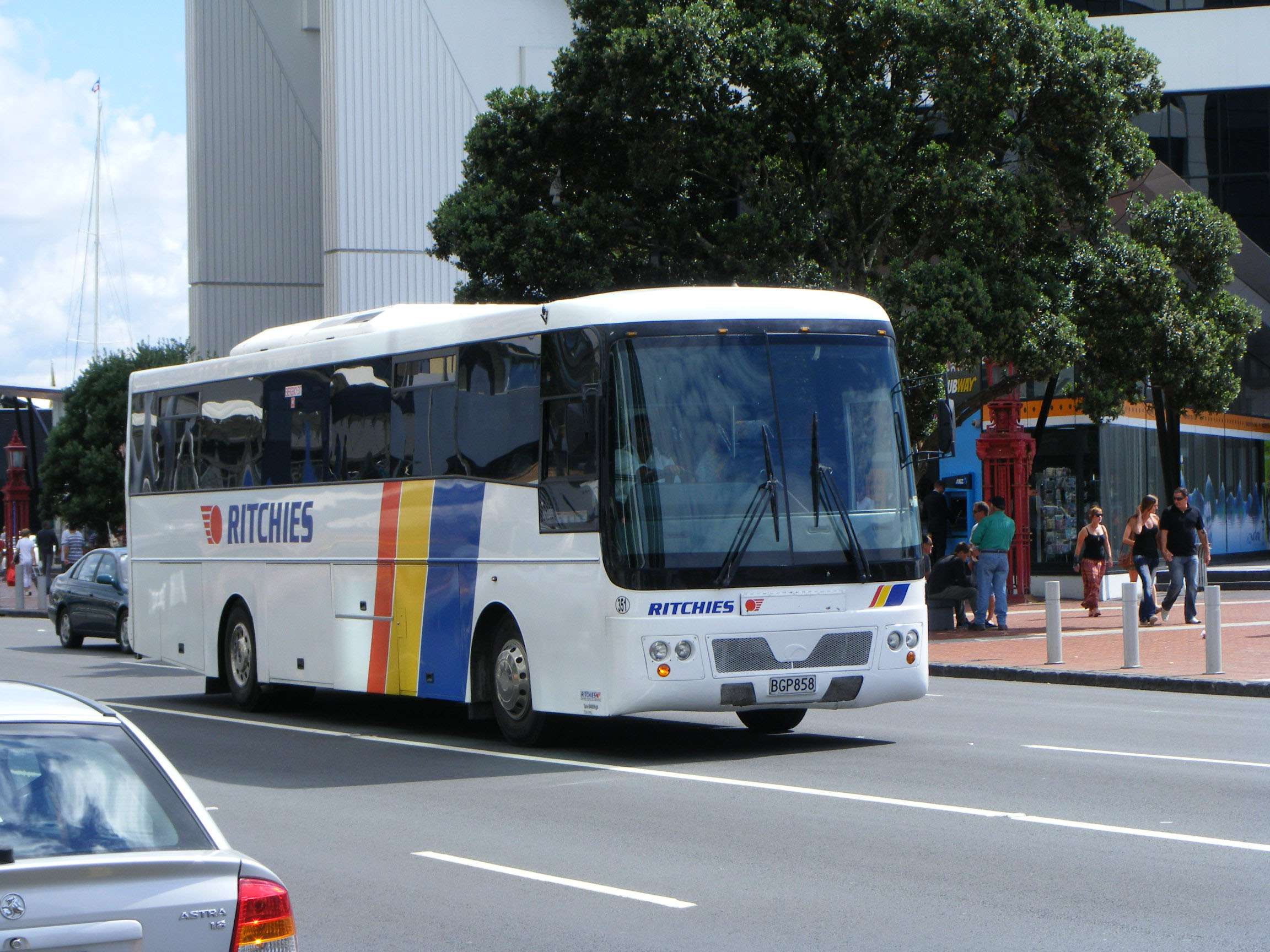 Seen near Auckland's Viaduct Yacht Basin in March 2013 is another Kiwi bodied coach, 351 (BGP858). The chassis is a 2003 Nissan CP210 and was one of a trio acquired with the takeover of Hanham's Buses of Albany in 2005. Sadly 351 was written off in an accident in Gisborne in late 2016.