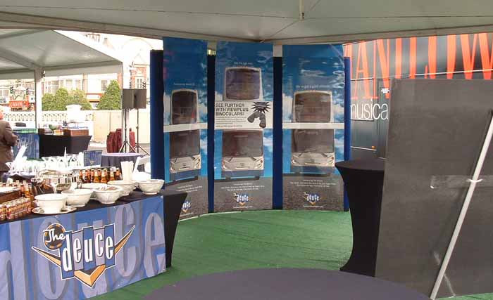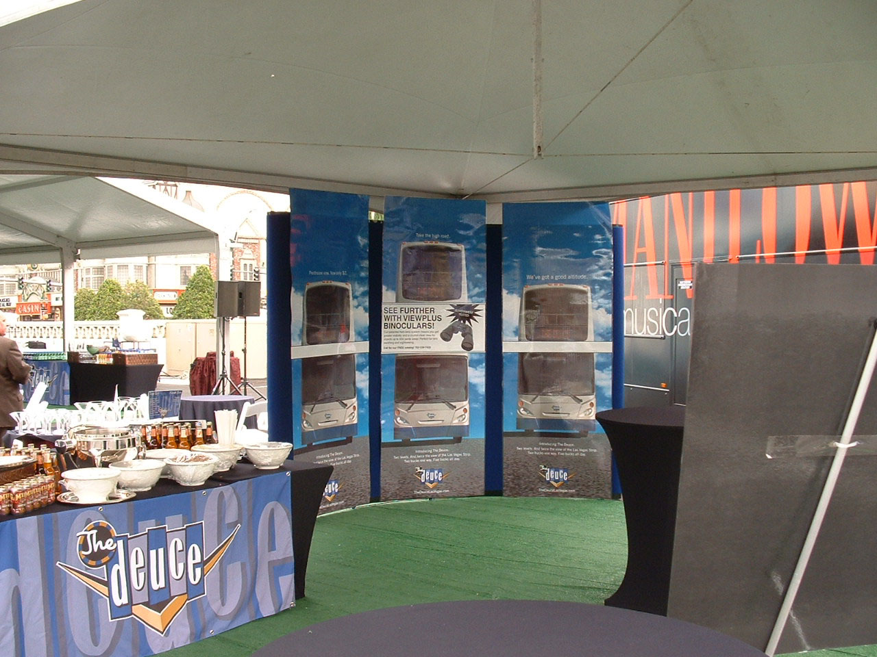 Alongside the Manilow bus was a display of Deuce posters, and off to the left some of the refreshments being served which included double cheeseburgers, double scoop ice-cream and anything that had a double or vertical theme! There were also a couple of young ladies, suitably attired distributing Doublemint gum.