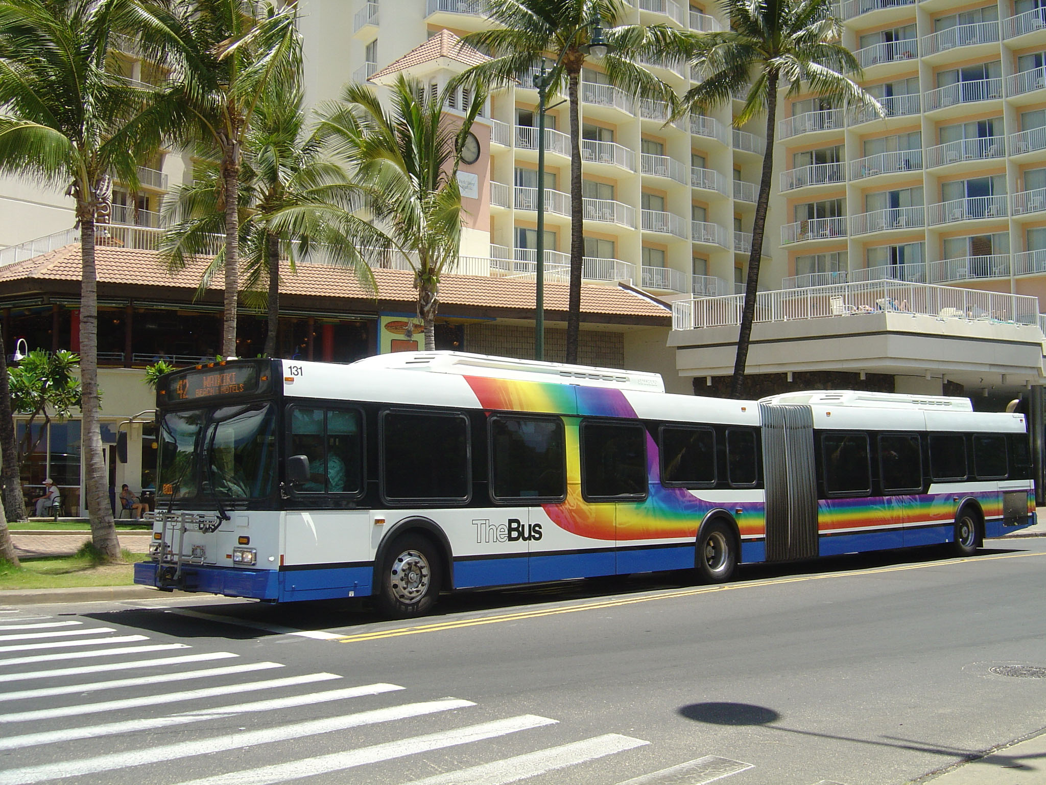 Another 2003 New Flyer D60LF 131 (BUS131) in downtown Waikiki that year, but now retired.