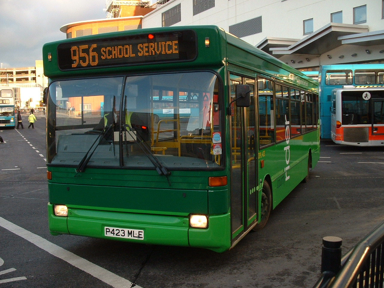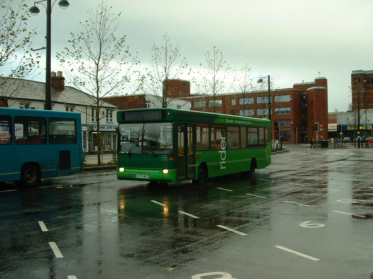 Dart DPL479 (P479MLE) had a career at Heathrow before arriving with Carousel at High Wycombe. It was new to Capital at West Drayton and then passed to National Express' airport operations division at Heathrow. It is seen in the new Wycombe Bus Station on a wet day at the end of 2006. It too is in green livery, but for Bucks County Rider services - tendered routes in the area. |
