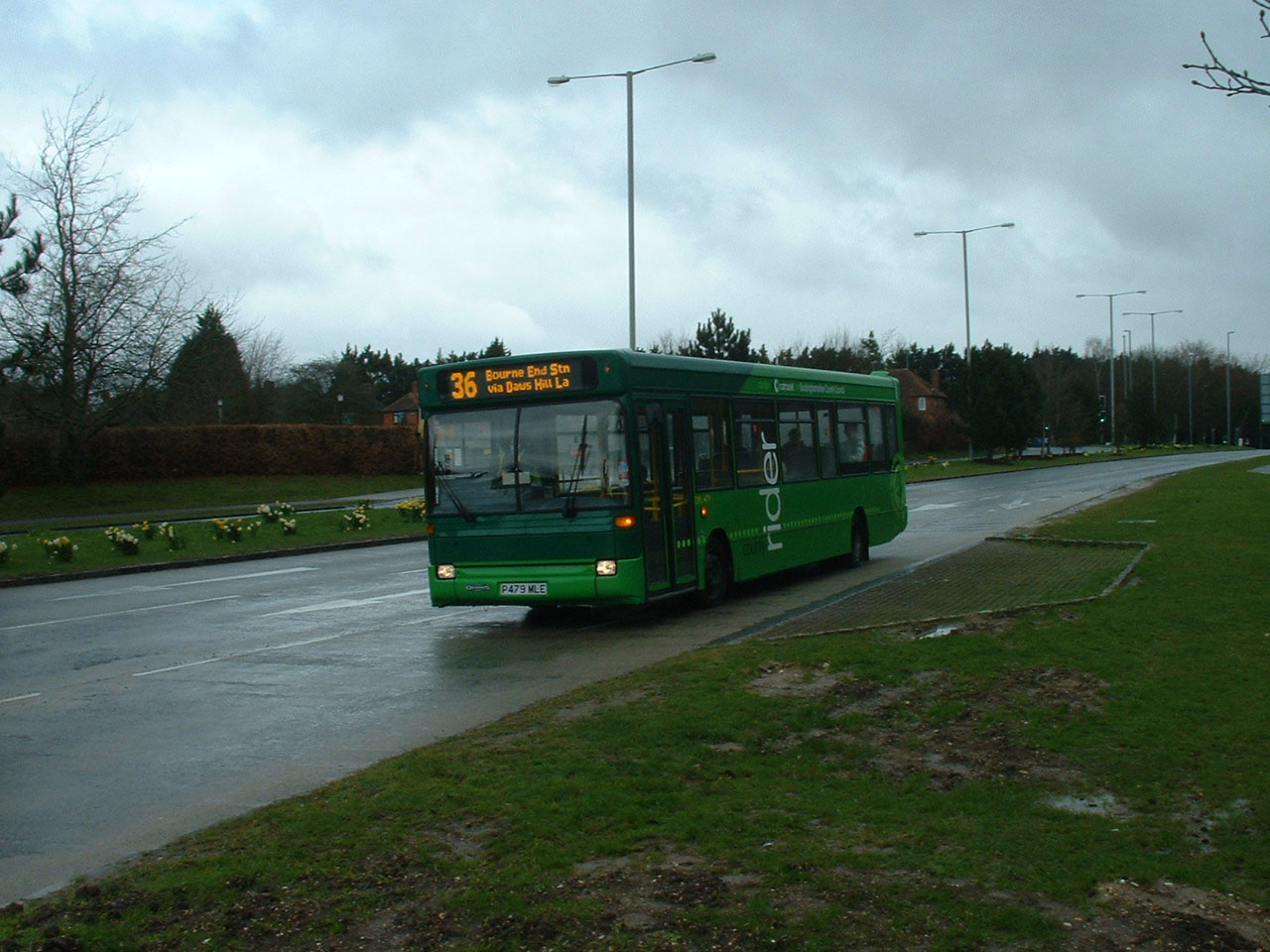 With the opening of the new Eden Centre in March 2008, the 400 service to Flackwell Heath and Bourne End became marketed as the 36 "Purple line" with route 35 also serving Flackwell Heath, but by a totally different route. A recently acquired ex Metroline Marshall bodied Dennis Dart was painted purple and branded for the services. However Easter Saturday 2008 saw County Rider branded DPL479 pretending to be purple at Handy Cross in Wycombe. |