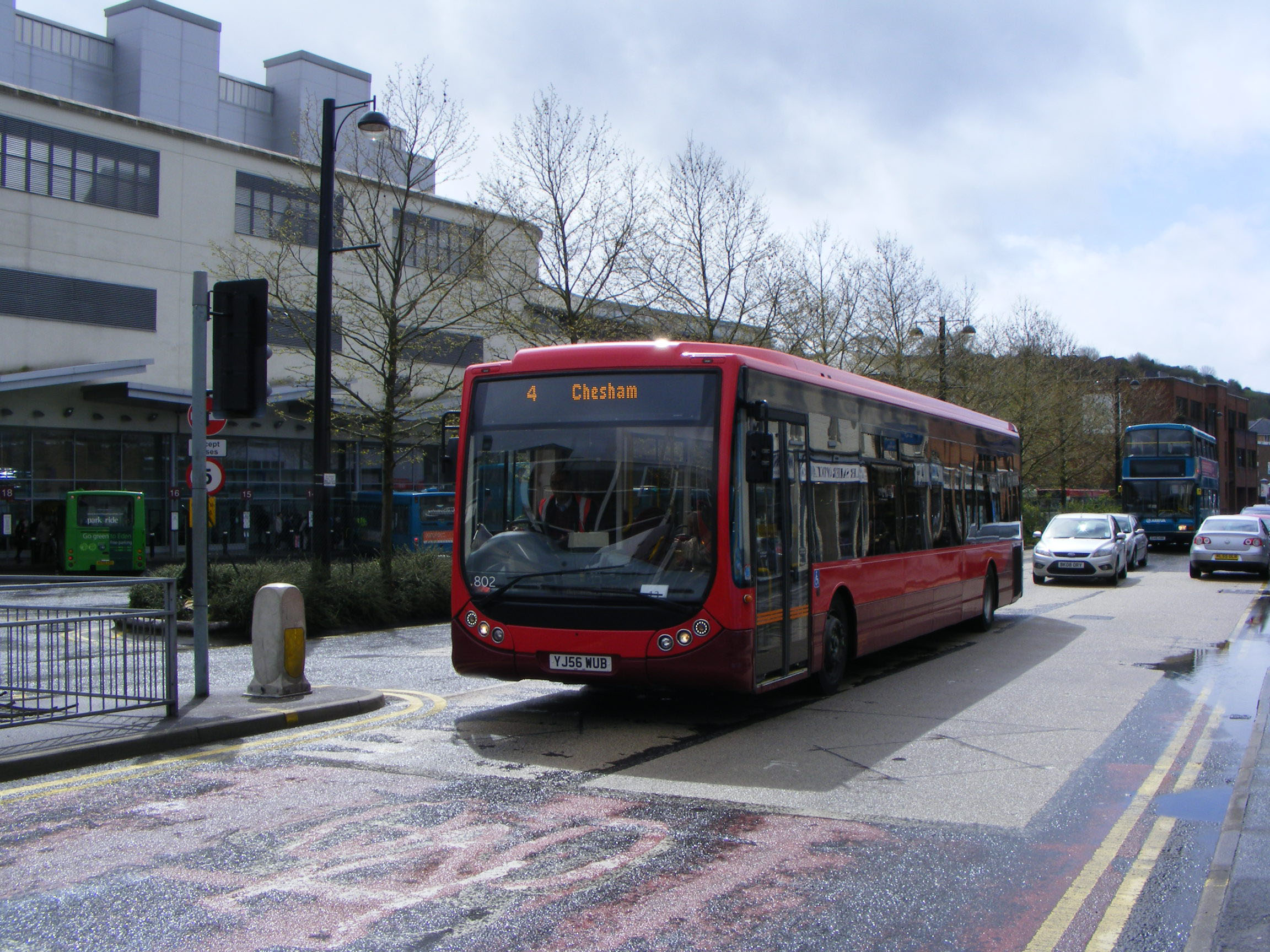 Seen battling the myriad of traffic lights that festoon Wycombe Bus Station, which appear to have no bus priority, is newly arrived 802 (YJ56WUB), yet to acquire C2WYC in April 2012. The bus was new to Pullman Coaches in South Wales, another Veolia acquisition. Initially it moved on to Wilts & Dorset where it was 2502 but was transferred to Wycombe by Go-Ahead. |