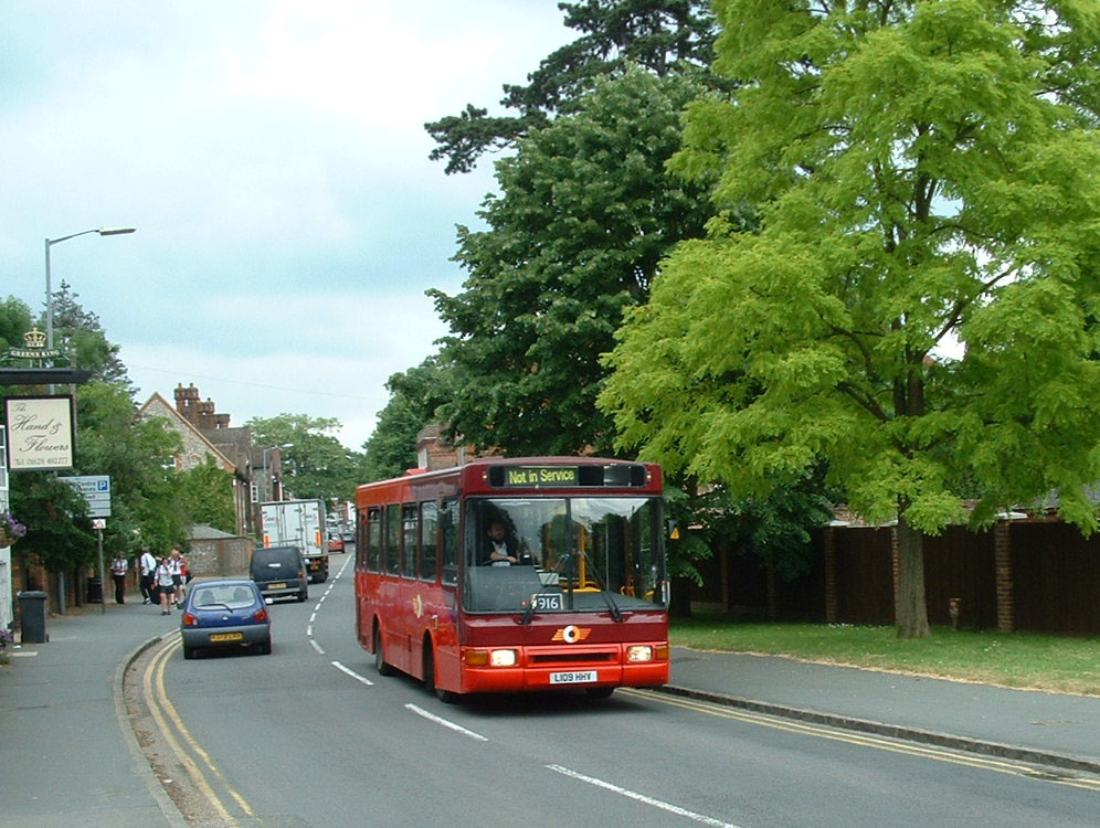 Former Metroline Northern Counties bodied Dennis Dart DNL109 (L109HHV), is seen in full livery arriving in Marlow on a school run in 2006. |