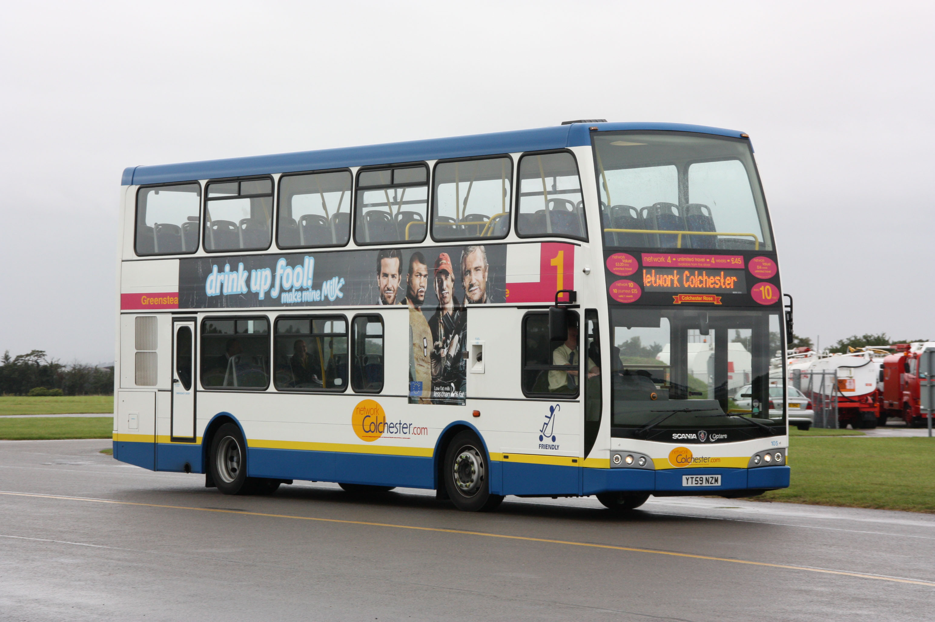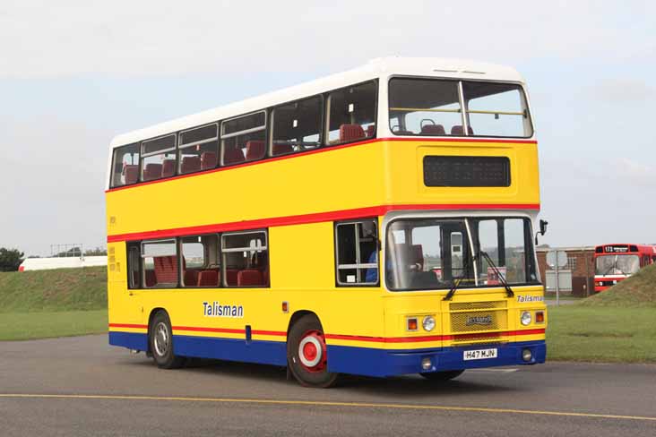New to Colchester Borough Transport as 47 (H47MJN), this all Leyland coach seated Olympian has seen several liveries. After Corporation livery it donned Arriva colours but also spent a spell with Southend in the same palet of colours as it has in this picture with Talisman Coaches at SHOWBUS 2014. Southend used it on the X10 London express. Between the two it was in Network Colchester colours as 347.