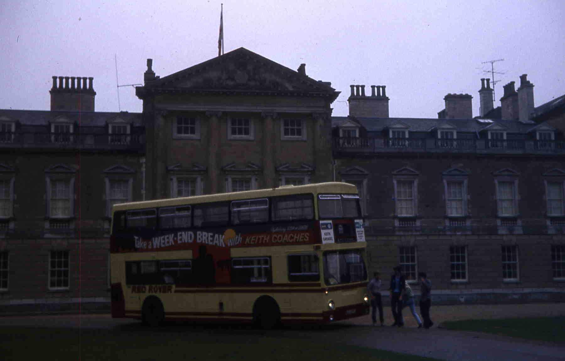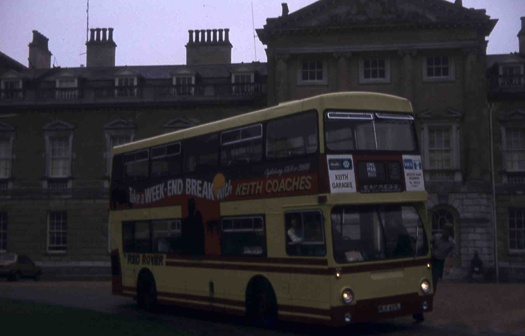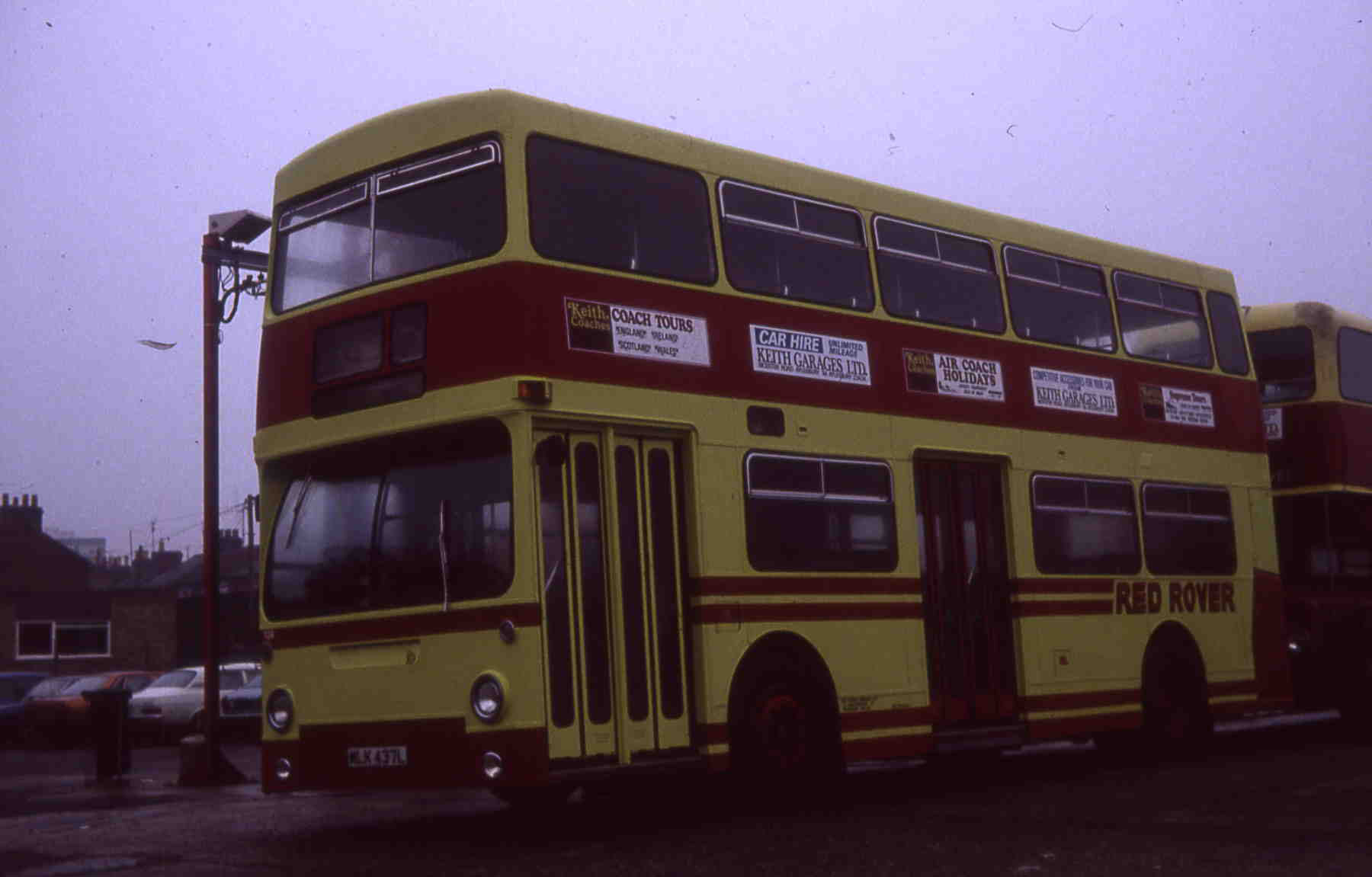 Red Rover 140 was the first of a pair of DMS buses for the company. It arrived marginally before 139 (MLK437L) seen here in the garage yard freshly painted and with temporary advertising for the associated garage and car hire businesses. Information on which vehicles were arriving from London was incorrect and number 139 was kept for what was expected to be MLK439L, but MLK437L was the bus acquired. Unlike many operators at the time purchasing DMS buses through dealer, Ensignbus, Red Rover acquired theirs direct from London Transport. The livery follows that on the Leyland National fleet which was inspired by their previous owner, Nottingham.