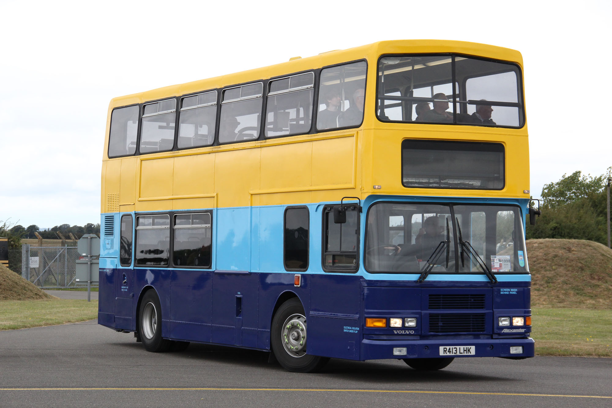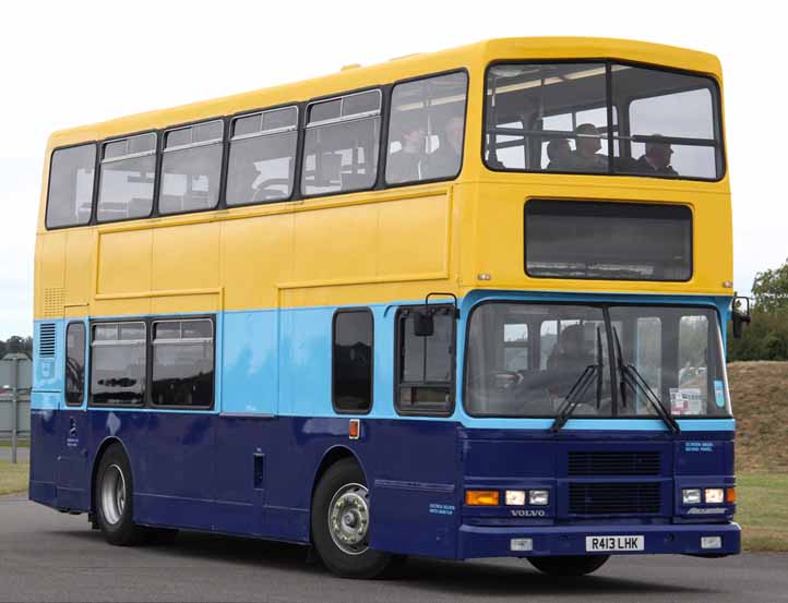 A more recent refugee from Ireland is this Volvo Olympian with Suffolk Council's SCC Travel Services as R413LHK. The bus is seen arriving at SHOWBUS 2012 in a simplified version of Dublin Bus livery.