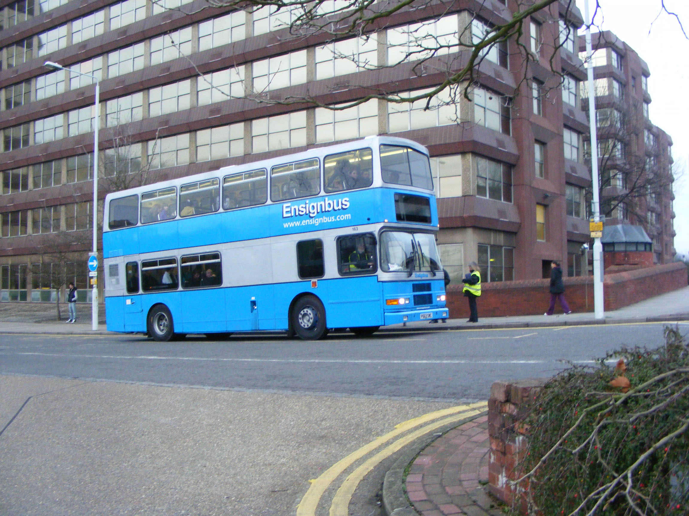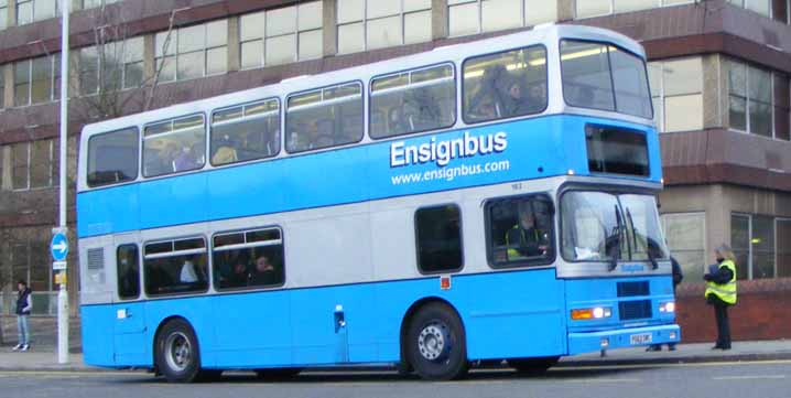 Many of the Dublin Olympians have passed through the hands of Ensignbus. They have also prepared many for service and performed conversions to single door. Olympian RV341 (97D341) was dragooned into their own operational fleet as 163 (P563SWC) and is seen here at work in February 2010.