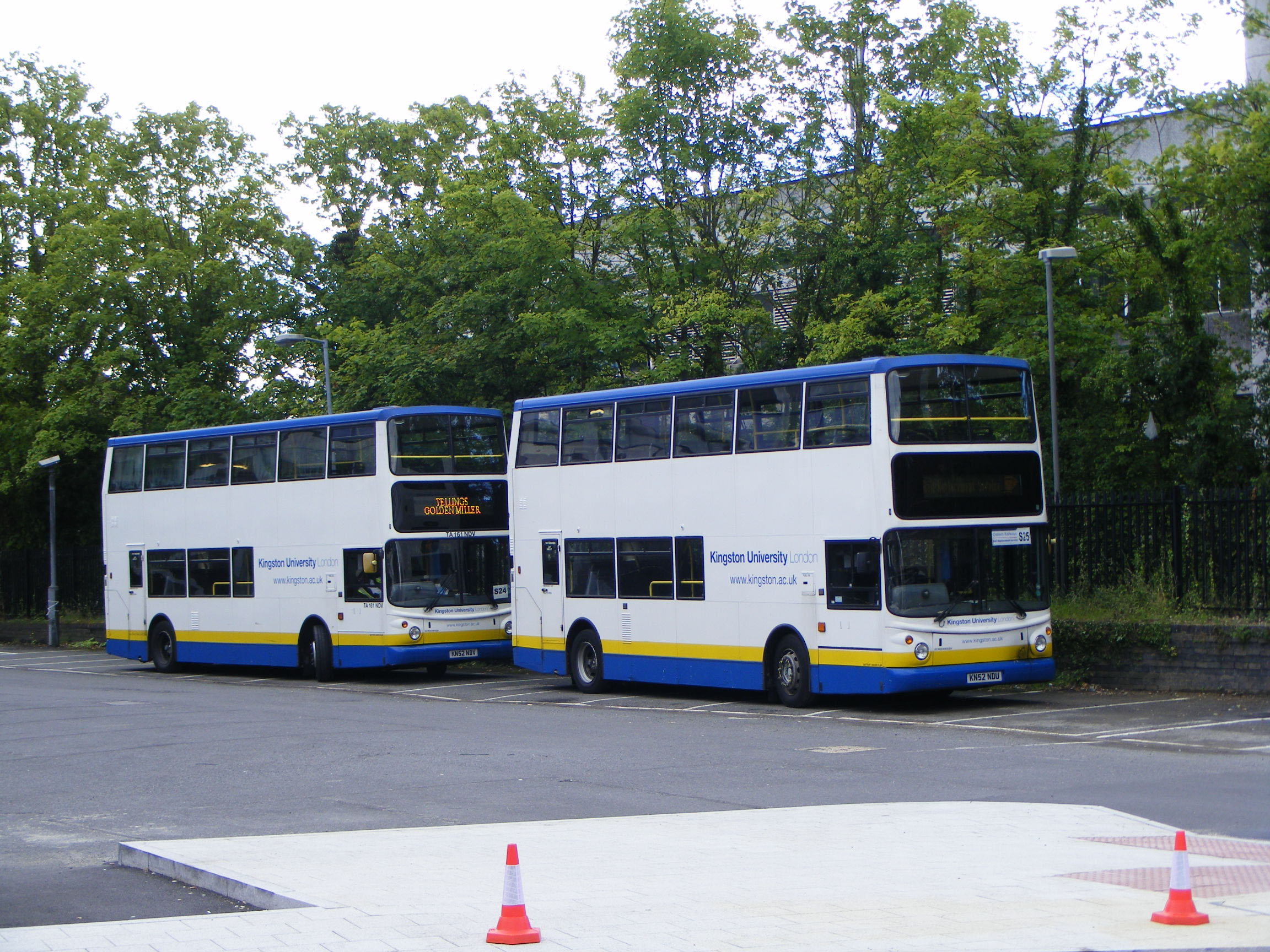 This pair of Alexander ALX400 bodied Dennis Tridents, KN52NDU and KN52NDV, were new to Armchair and came via Metroline, not cascaded from an Arriva operation to Arriva subsidiary, Tellings Golden Miller. As can be seen they are lettered for a contract for Kingston University but are parked at High Wycombe Station as standby vehicles for the rail replacement operation in summer 2011 whilst the Chiltern Rail line - also in Arriva ownership - was undergoing major track improvements. |
