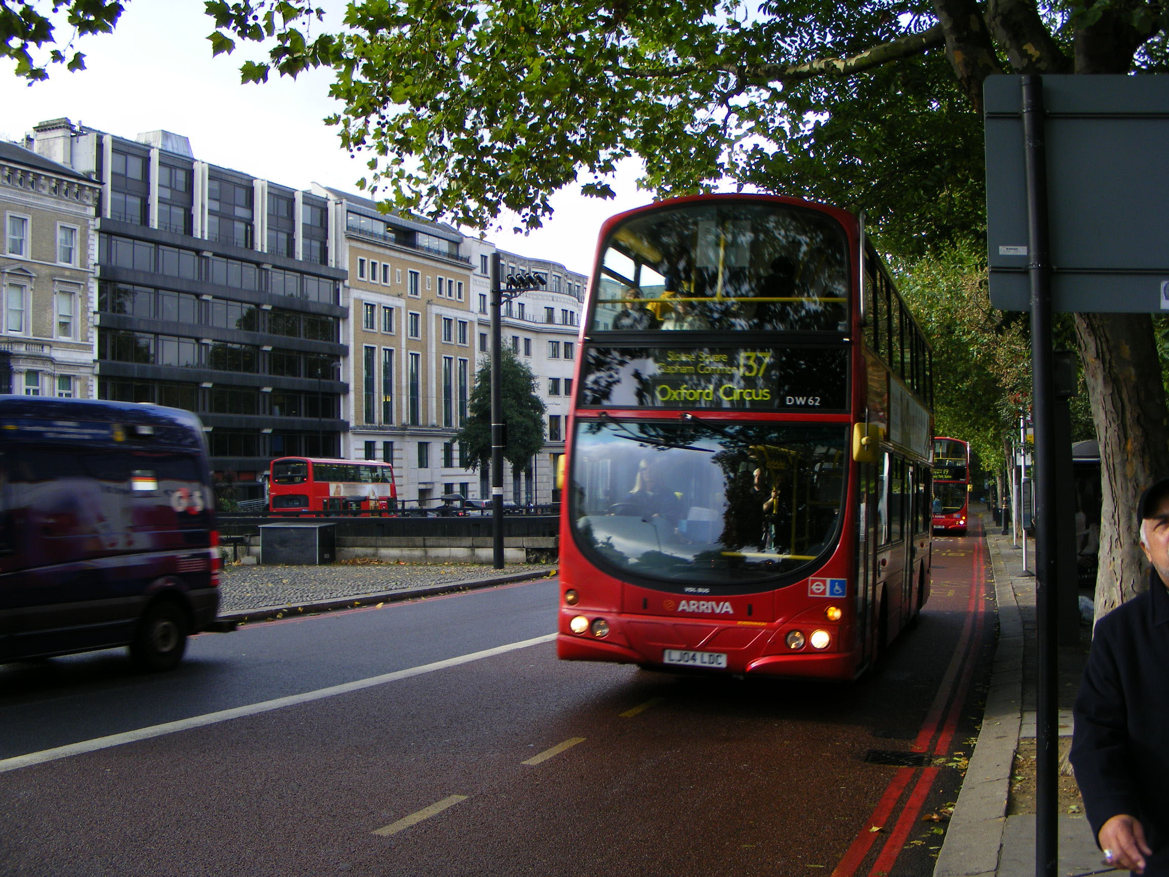 Also at the Hyde Park Corner stops in Knightsbridge that day, but on the 19 is repainted DW67 (LJ04LDL).